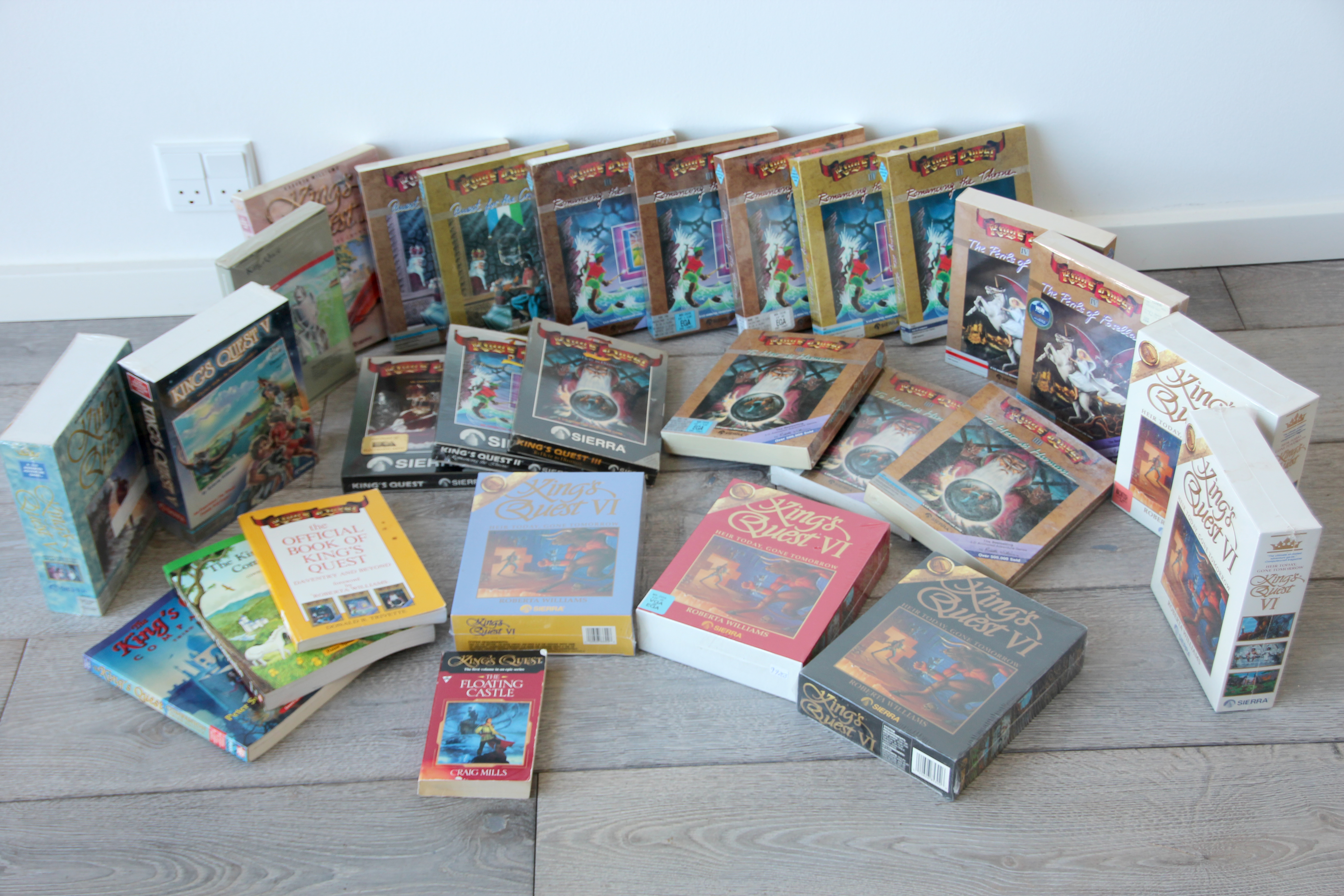 Here we have some of my sealed King’s Quest items. My favorites KQ item is my sealed 1984 release – the original King’s Quest for the IBM PCJr. Thou the PCJr failed in many ways King’s Quest survived and quickly became one of Sierra On-Line’s absolute best selling series.