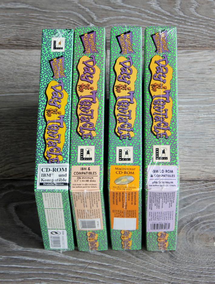 Below a few of the various releases from my collection – The original sealed US floppy disk release, the original sealed US CD-ROM release, a sealed US CD-ROM Macintosh release, the original sealed German CD-ROM release, and the more rare triangle box (which was released as a promotional item). I do have a few more items in storage so might add a few pictures in the future.