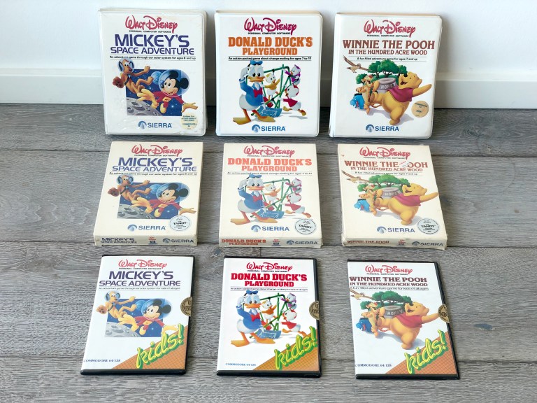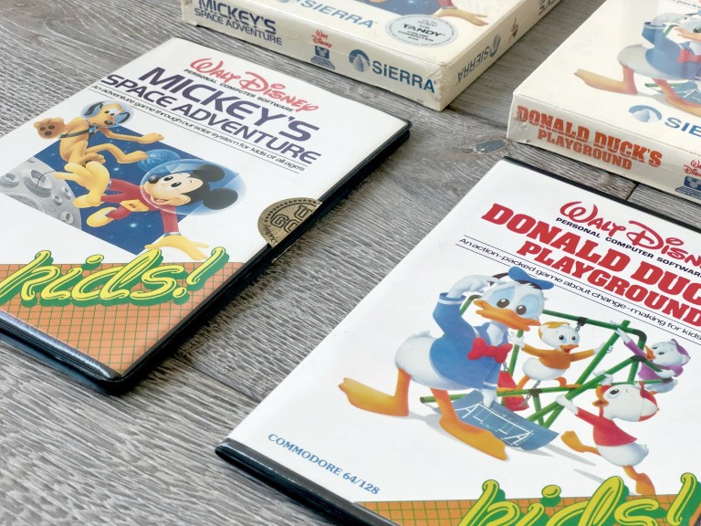 The first title of the joint effort was Mickey’s Space Adventure, released in 1984 for the Commodore 64.