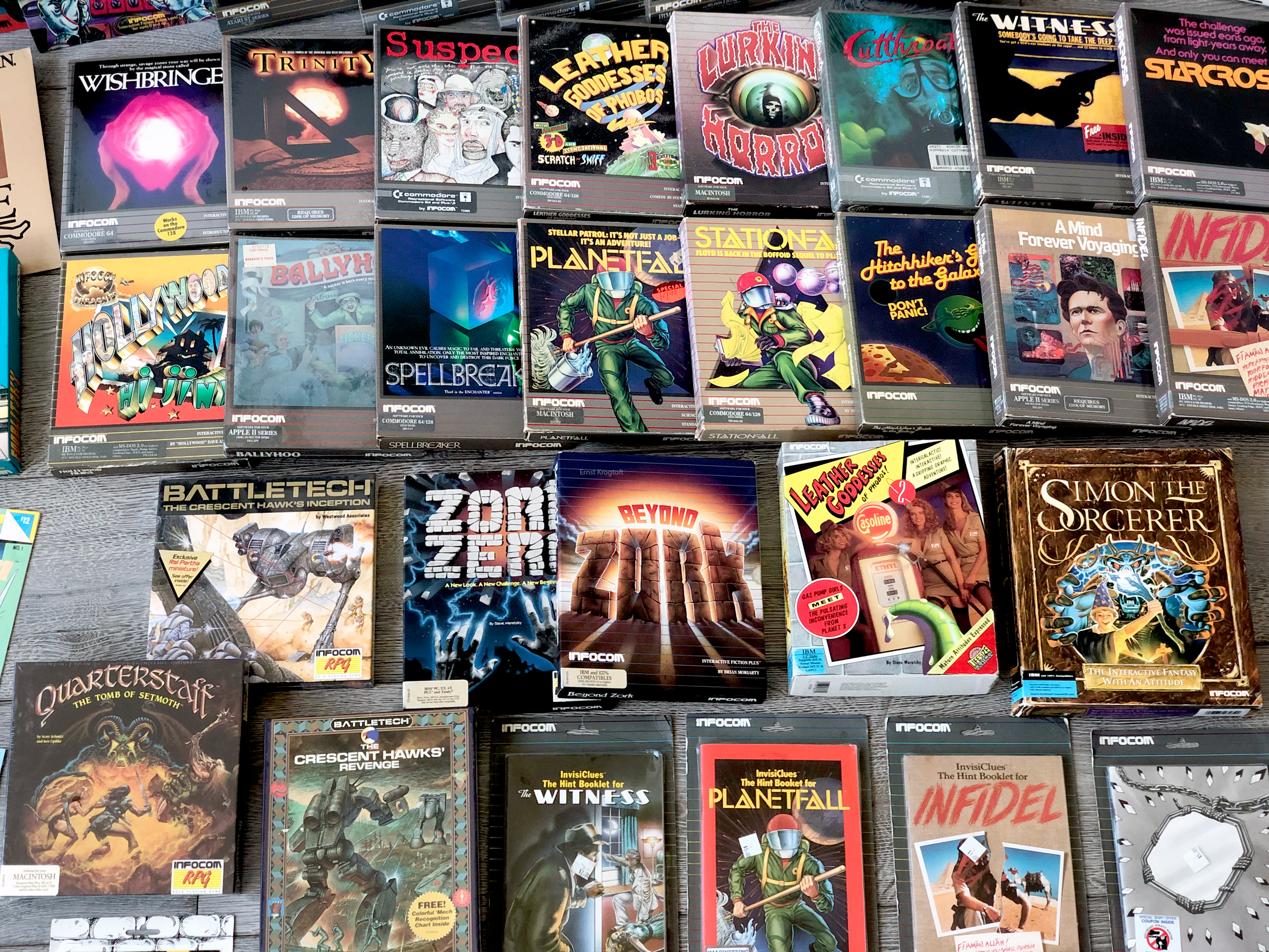 I finally had some spare time this summer to go through my collection, tidying up, selling doubles, and items that didn’t fit in. I also managed to dig out, what I believe is all of my Infocom titles, so decided to do a few family portraits.