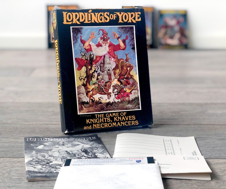 Lordlings of Yore: The Game of Knights, Knaves and Necromancers was a turn-based fantasy strategy game, written and designed by Jon F. Baxley and programmed by Trey C. Johnson. It was published in 1983 by Baxley’s company Softlore Corporation. Lordlings of Lore was a medieval fantasy strategy game, with both tactic and diplomatic game elements. It featured hot seat play, in which each player carried out a turn of commands, each turn had six phases: Necromancer-, Treasury-, Deployment-, Movement-, Combat and an Option phase.