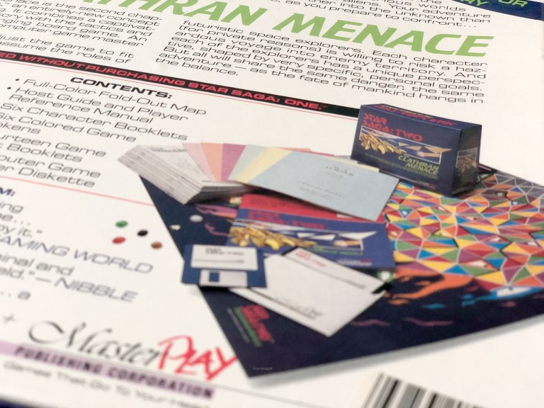 Star saga: One – Beyond the Boundary, the IBM/PC release from 1988. The game included 13 booklets with almost 900 passages of text, 6 token’s and a color fold-out map