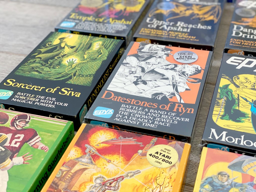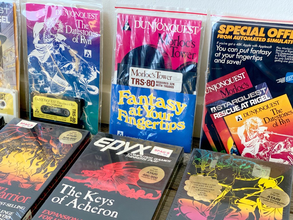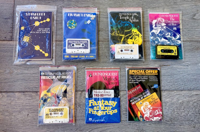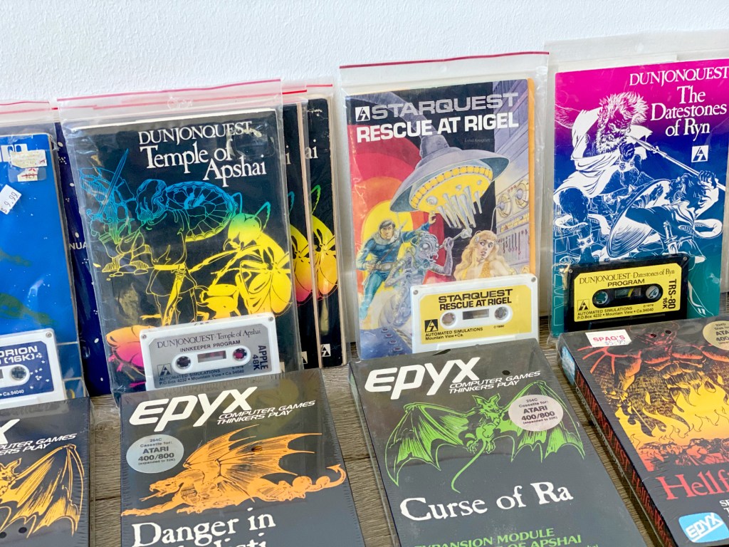 A small lineup of Automated Simulations zip-lock releases from 1978-1980. Most of the titles were later released for an array of personal computers and all in a boxed format