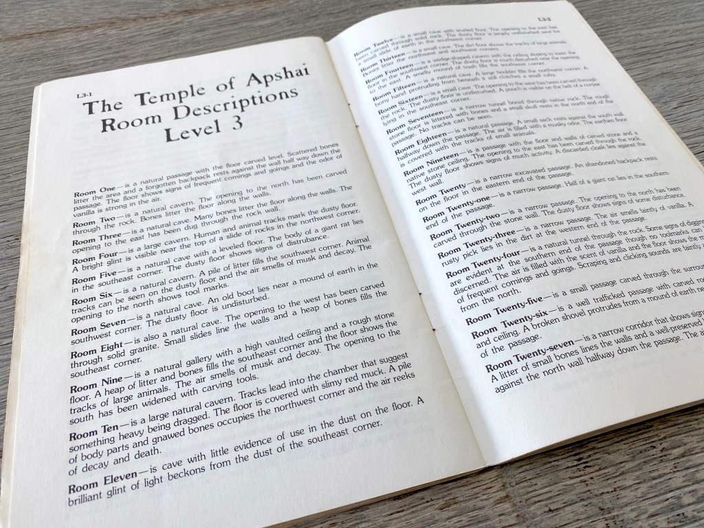 The Book of Lore described every single room in the game. While many crawlers would feature randomly generated dungeons, Temple of Apshai had “static” rooms which never changed. Every room in the game had a number which could be referred to in the book