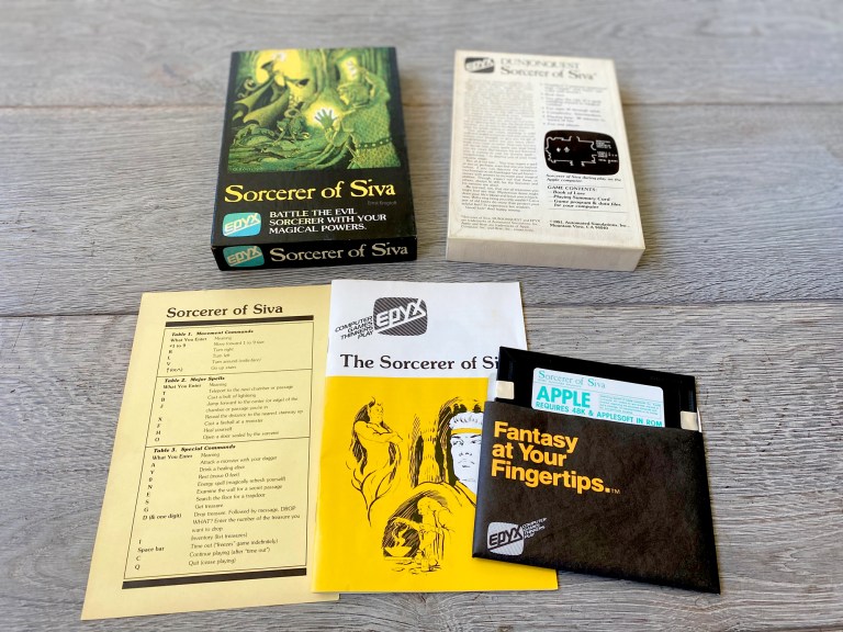 Sorcerer of Siva for the Apple II, released in 1981, the last standalone title in the Dunjonquest series