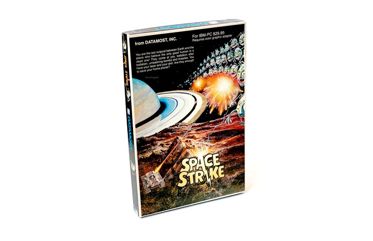 Gordon had a few years earlier, in 1980, sold his company Programma International, the biggest software publisher of the ’70s, to Hayden Book Company. Hayden turned Programma into Hayden Software with Gordon initially staying on as Vice President and General Manager. Gordon’s personality, however, soon clashed with the Hayden executives and was fired in the spring of 1981, from here on he would establish Datamost with a focus on publishing technical writings and Apple II software. Space Strike would become Datamost’s first and one of only a small handful of titles released for the IBM/PC.