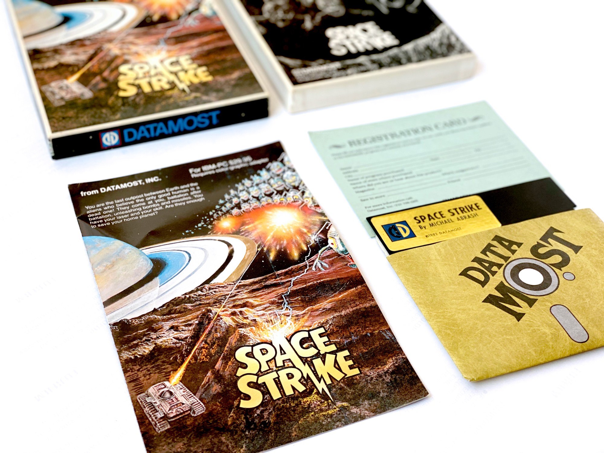 Gordon had a few years earlier, in 1980, sold his company Programma International, the biggest software publisher of the ’70s, to Hayden Book Company. Hayden turned Programma into Hayden Software with Gordon initially staying on as Vice President and General Manager. Gordon’s personality, however, soon clashed with the Hayden executives and was fired in the spring of 1981, from here on he would establish Datamost with a focus on publishing technical writings and Apple II software. Space Strike would become Datamost’s first and one of only a small handful of titles released for the IBM/PC.