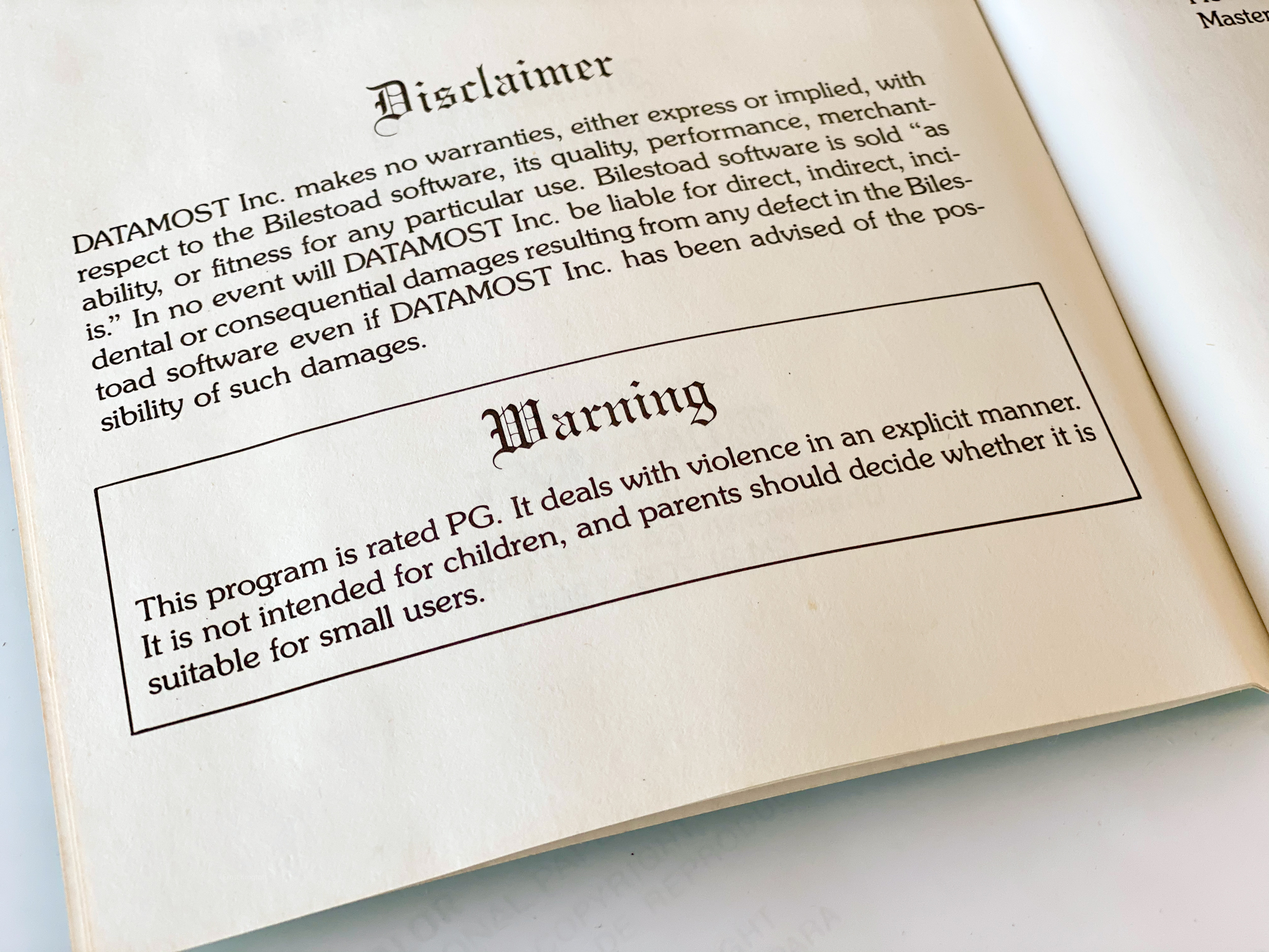 The Bilestoad came with one of the most extensive manuals of the time. It not only featured an elaborate backstory but also great details on how to master the game.