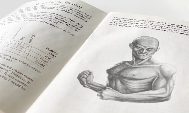 Goodman’s new game started out as a simple idea of two knights engaging in armed combat. Over the next one and a half years of on and off work, he developed an impressive and technologically advanced one-on-one fighting game. This was before fighting games were a thing and while action games were nothing new, The Bilestoad’s big and detailed fighters left nothing to the imagination when limbs were chopped off and blood was spewing everywhere. The game featured an intricate combat system where both attack and defense had to be mastered, blocking your enemy’s blows while hitting him with your oversized battleaxe was a coordinated dance of keypunch combinations. The battles would take place on different islands scattered with various special items to help you in your battles. The playfield was scrolling as you moved around, quite a technical accomplishment. Three small radar screens, with different zoom levels, on the right, showed the map, special items, and the enemy, giving the game a kind of “hunter and prey” like gameplay. The game could be played against a friend or against the computer.
