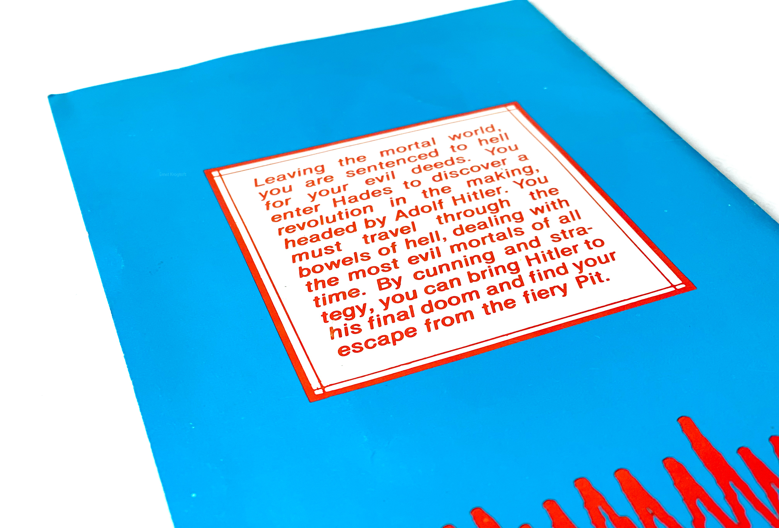 You have died and are, unreasonably, heading straight down under… no not to Australia, further down, as far as you can go… to hell. In this fiery wasteland, Hitler is gathering an army, including Mussolini and Reverend Jim, among others, to overthrow Lucifer himself. Help convince Lucifer of Hitler’s ill intention and get a free pass to heaven. It might sound like a piece of work from someone still high on a ’70s acid trip, nonetheless, this is the plot of Jyym Pearson’s 1982 adventure title Lucifer’s Realm.
