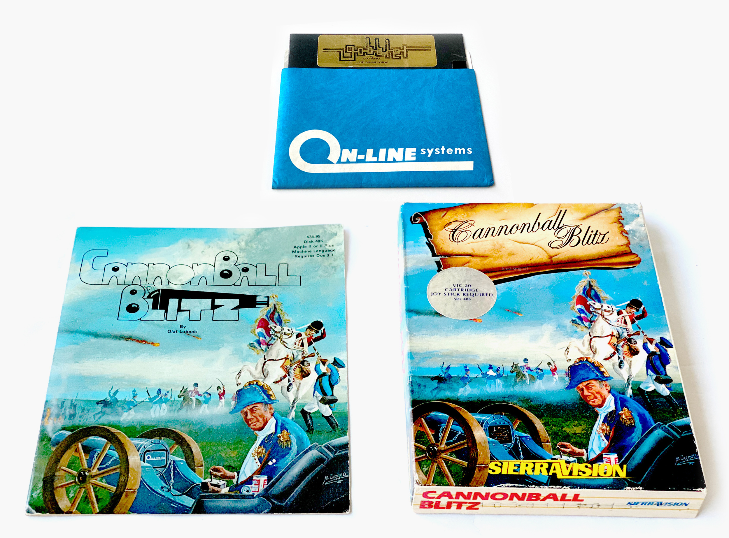 While Olaf Lubeck’s two titles Gobbler and Cannonball Blitz might appear to be yet another two clones in a market full of clones they both have interesting places in early gaming history. This was a murky time with no distinct line between what was legal and what was downright copyright infringement. Gobbler catapulted Ken Williams’ On-Line Systems into legal battles with the biggest player in the computer entertainment industry. A battle that ultimately would set the precedence for future clones, clones like Cannonball Blitz, released in the wake of the battle.