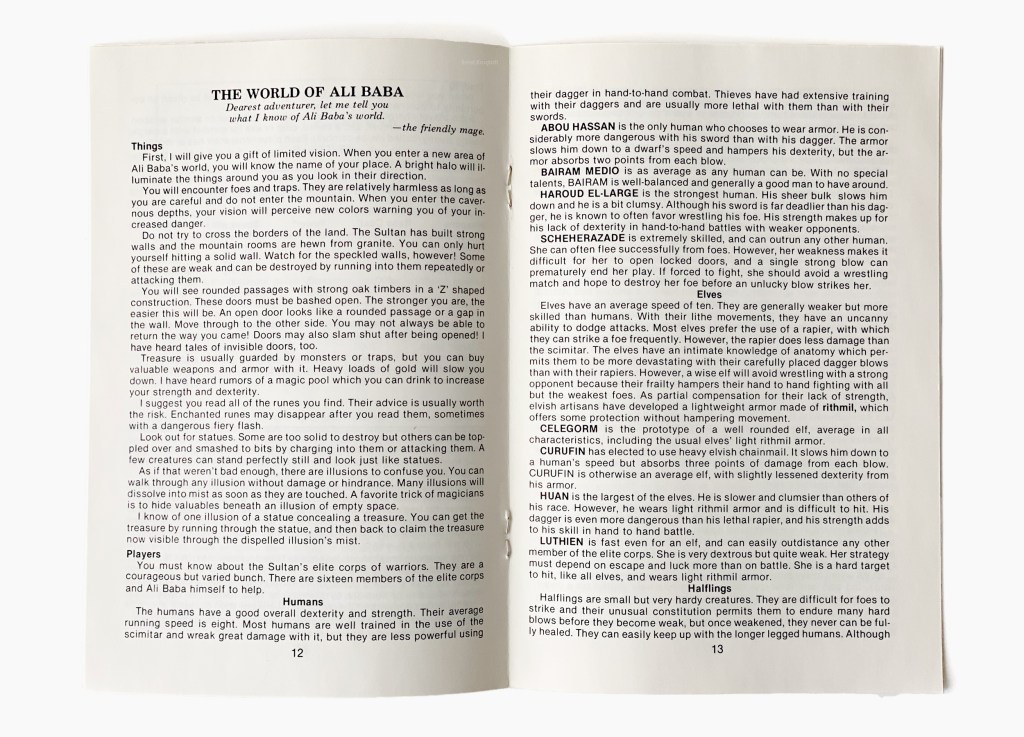 As I continue my journey through some of the early computer role-playing titles in my collection, I thought I’d write a few words on Stuart Smith’s Ali Baba and the Forty Thieves. CRPG Addict has a great article on his blog, which you should definitely check out.