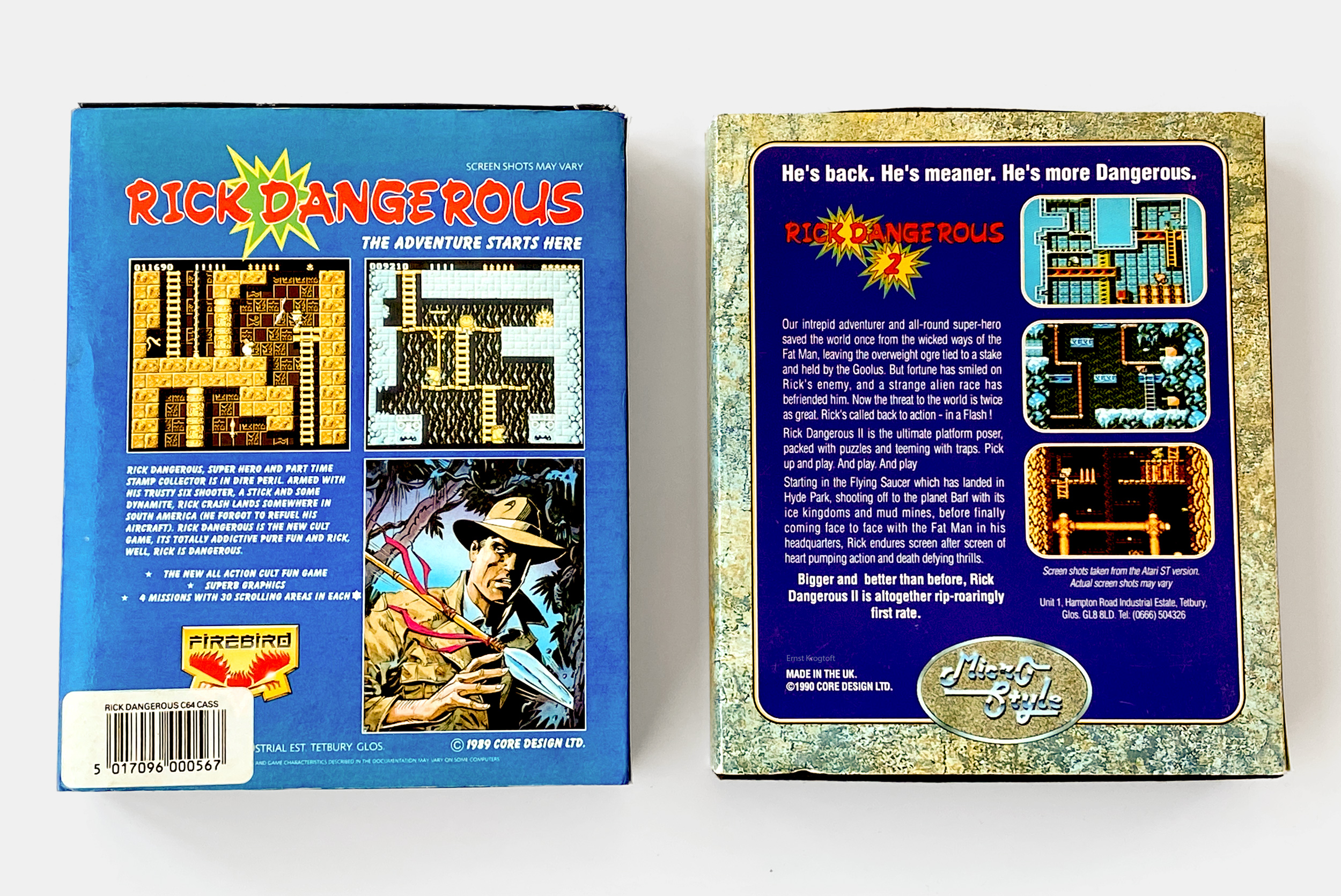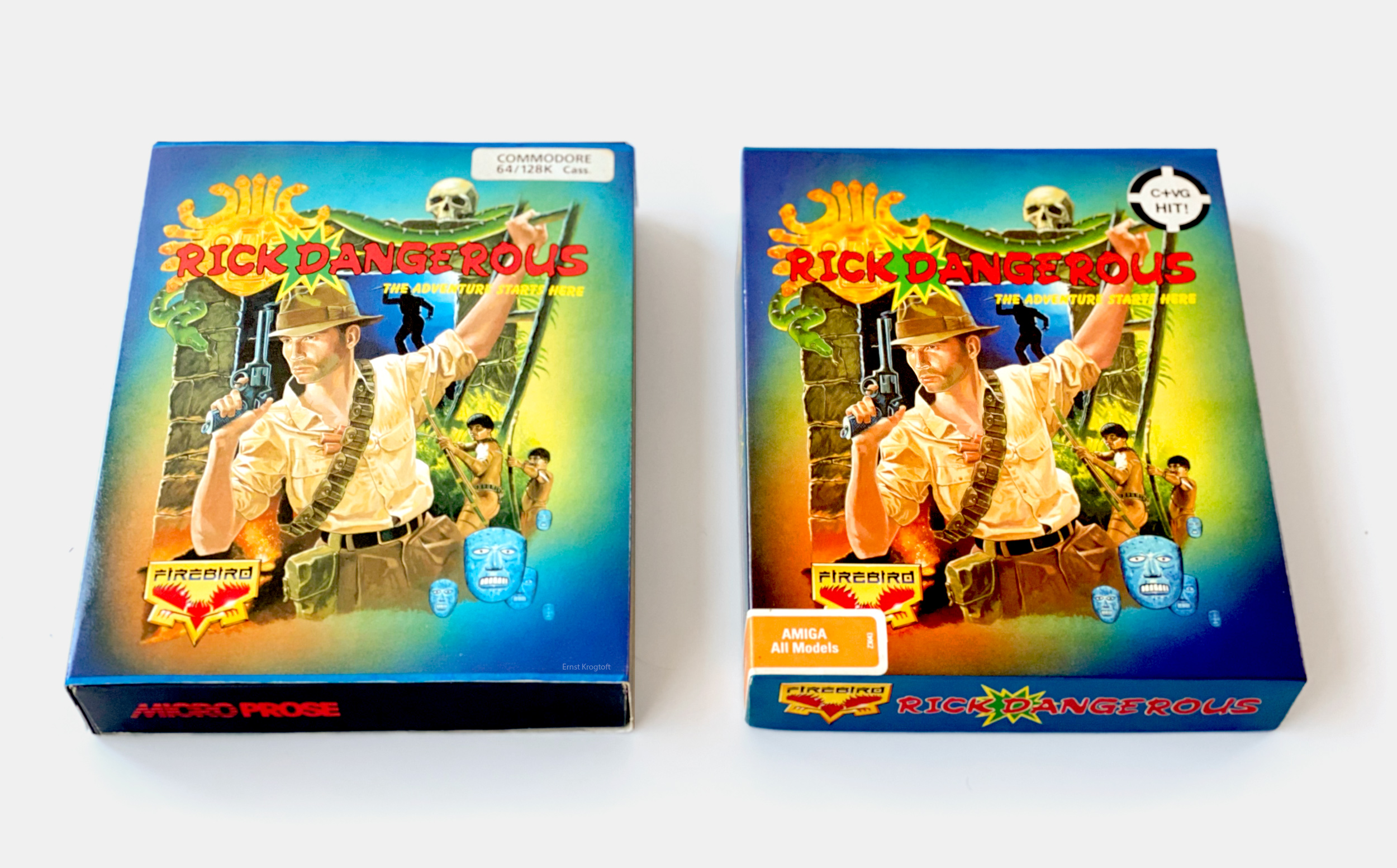 Rick Dangerous was released in 1989 by Microprose, who the same year had acquired Telecomsoft. Telecomsoft had been a division of British Telecom and operated three separate labels in the UK, Firebird, Silverbird, and Rainbird, each with a different marketing strategy. Firebird was the company’s primary identity label, Silverbird for low-budget titles, and Rainbird for high-profile 8-bit and 16-bit games and application software. The Silverbird label was sold off soon after the Microprose acquisition but the Rainbird and Firebird labels continued for a short period of time. Rick Dangerous was published under the Firebird label in the UK and under the Microplay label in the US, Microprose’s domestic label for externally developed titles.