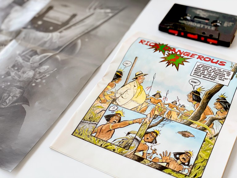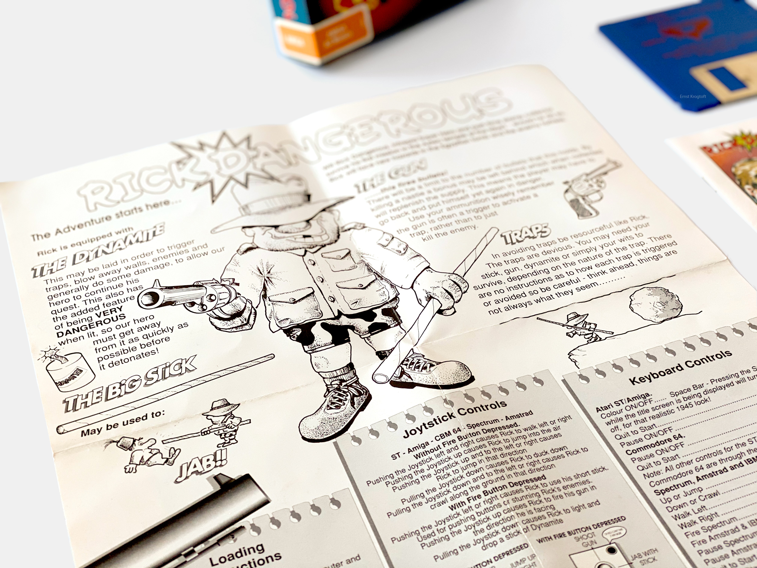 Phipps didn’t know that his published game would come with an illustrated Rick Dangerous cartoon strip from one of his favorite artists, British comic book artist, Ian Gibson. Included in the box was also a poster with instructions on the backside