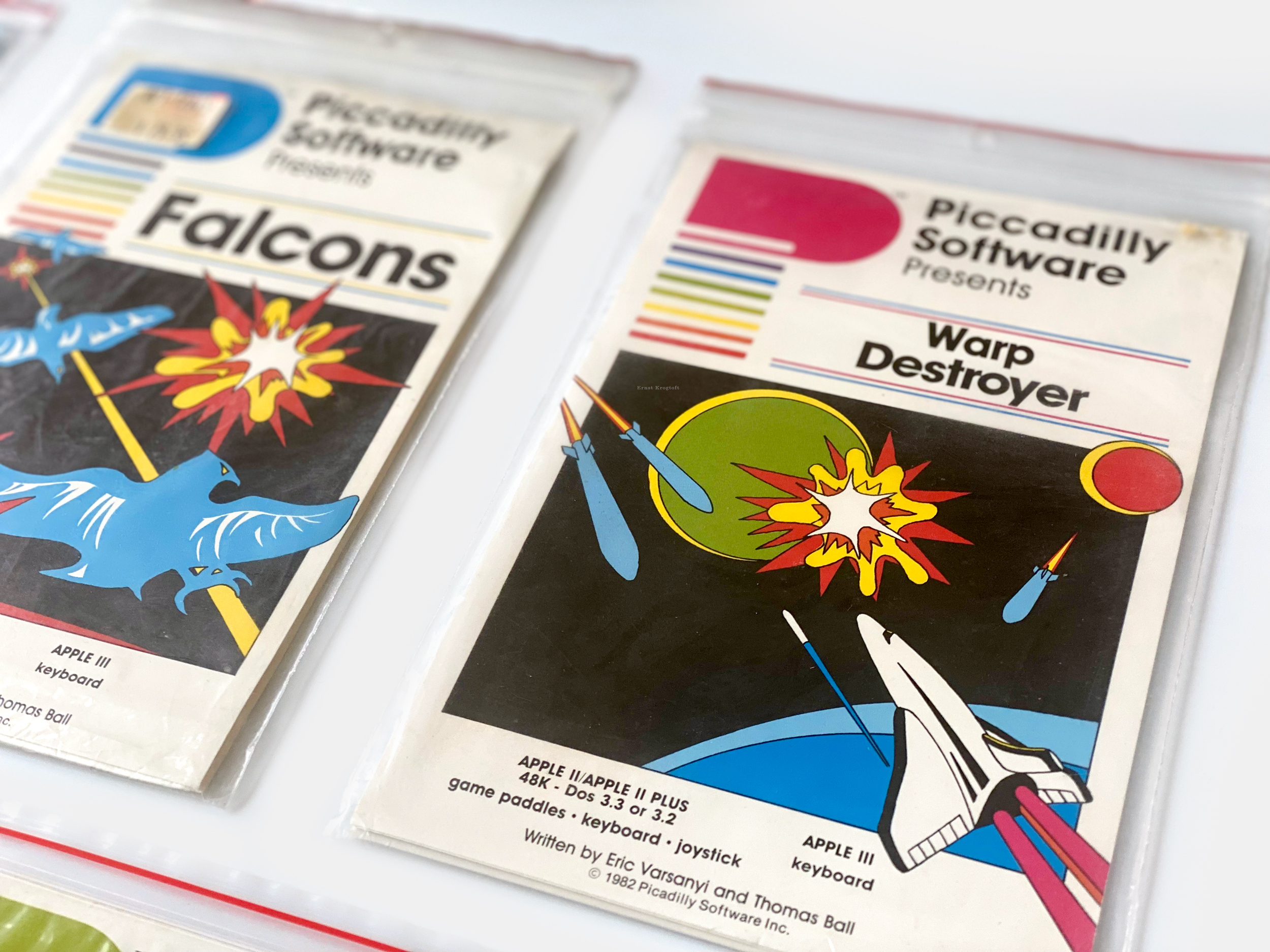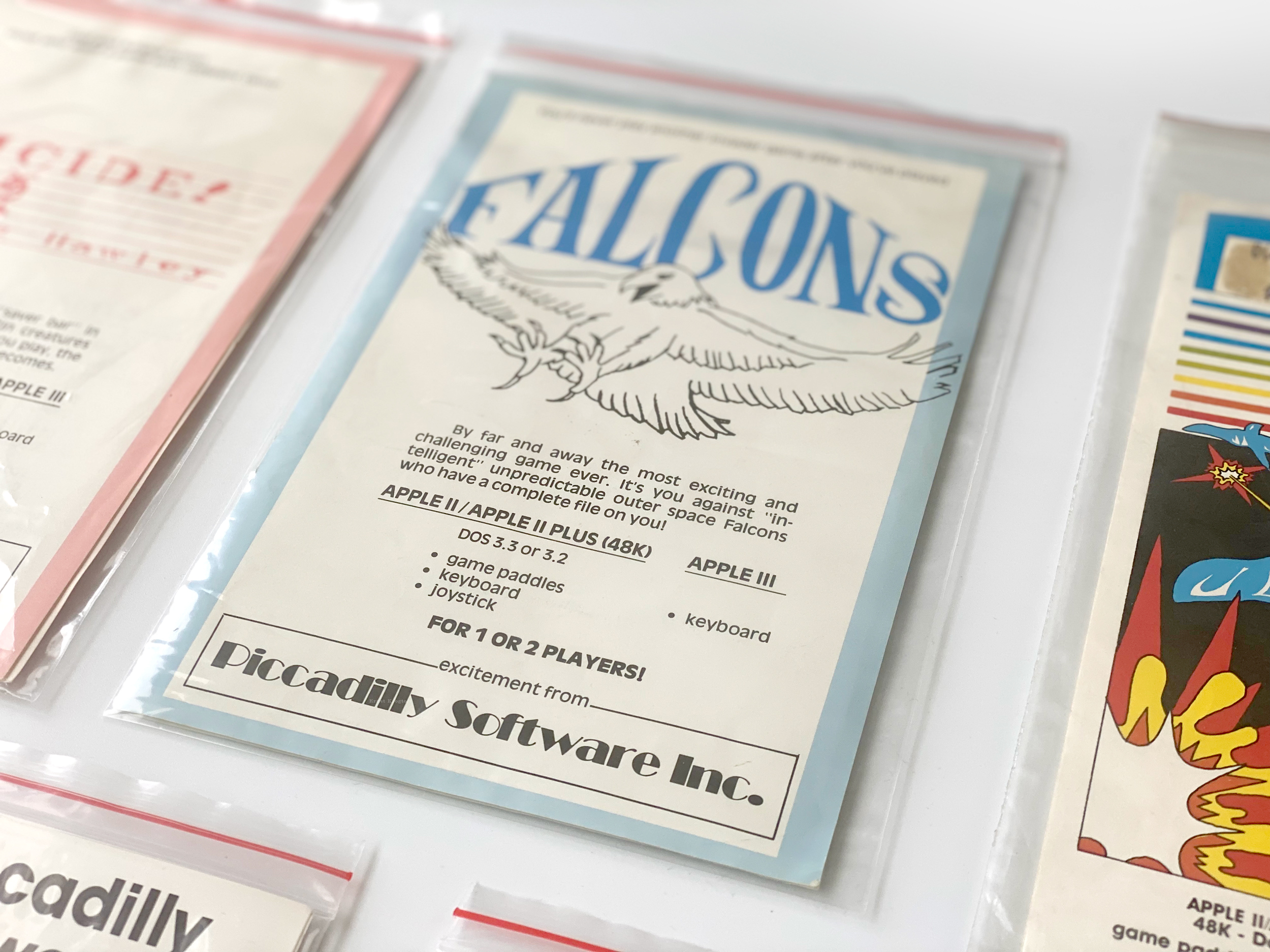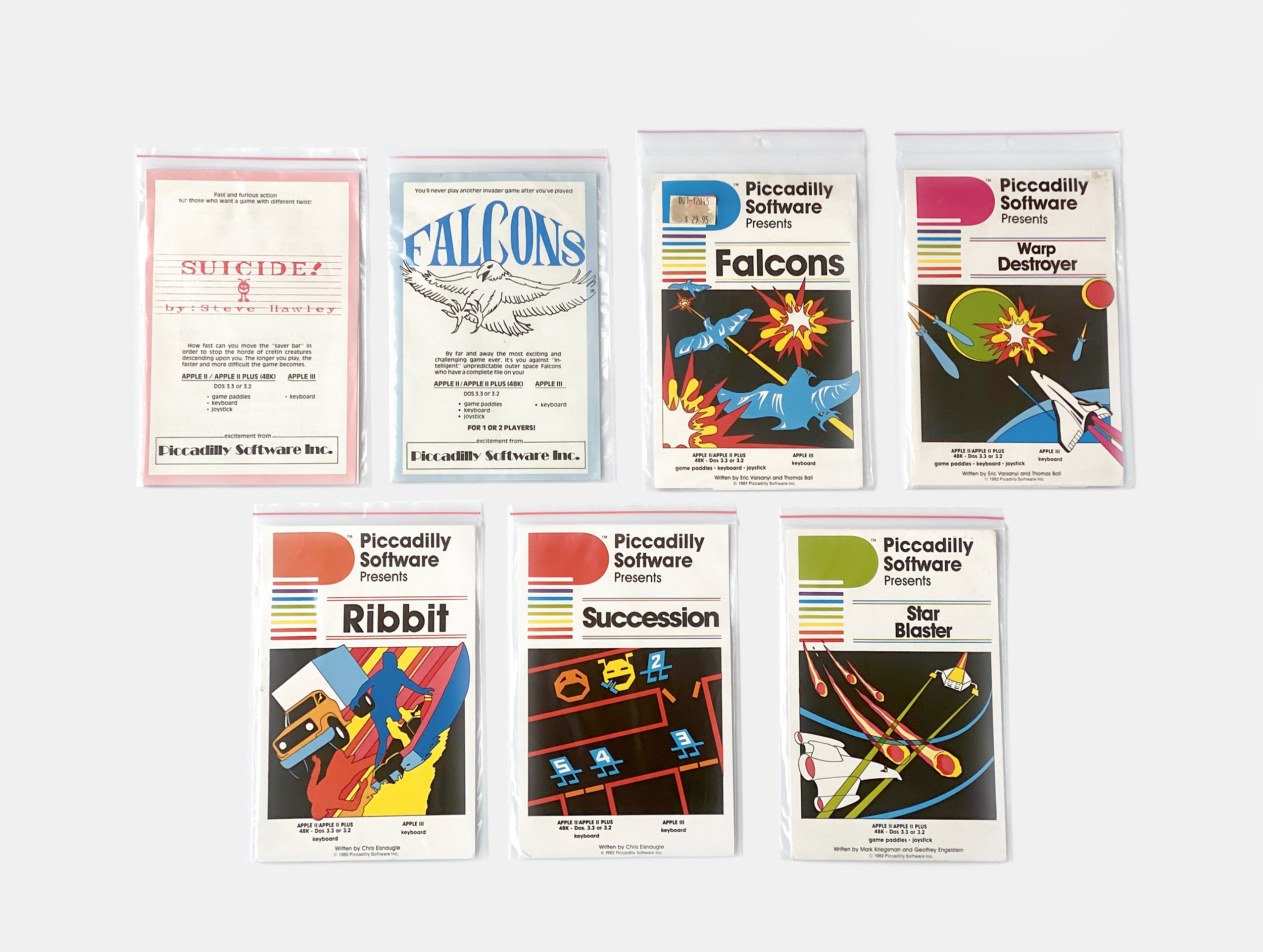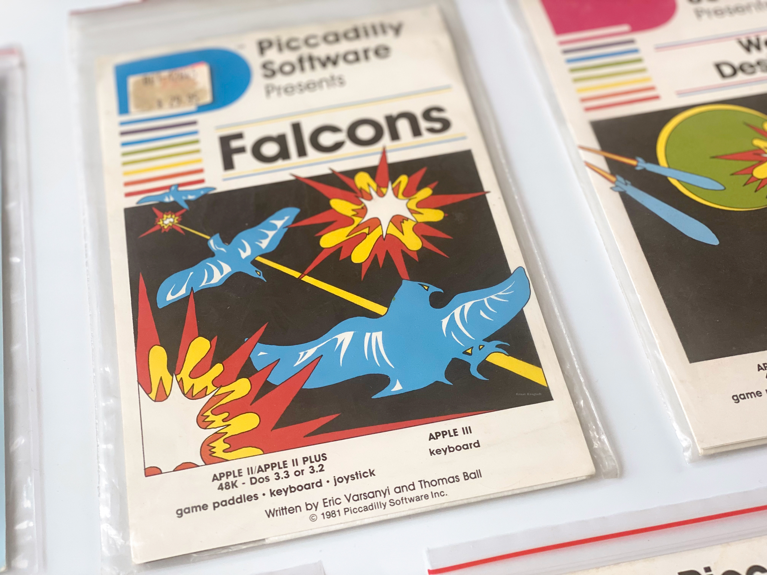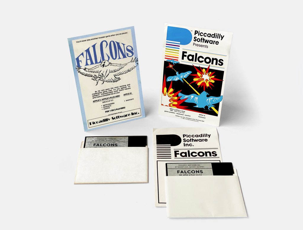 In the spring of 1981 Eric Varsanyi, a part-time Stonehenge Computer employee, along with high school classmate, Thomas Ball, a frequent visitor of the store, writes the last bit of code on their new fast-paced action title. The game is shown to Tolley and Mahoney and while their focus is on business software, they see an opportunity to market the new game. To keep business and pleasure apart the two decide to found a new company catering to the development and marketing of games and entertainment. By the summer of 1981 the new company, Piccadilly Software Inc. is a reality and Varsanyi and Ball’s game, Falcons, becomes the company’s first published title.