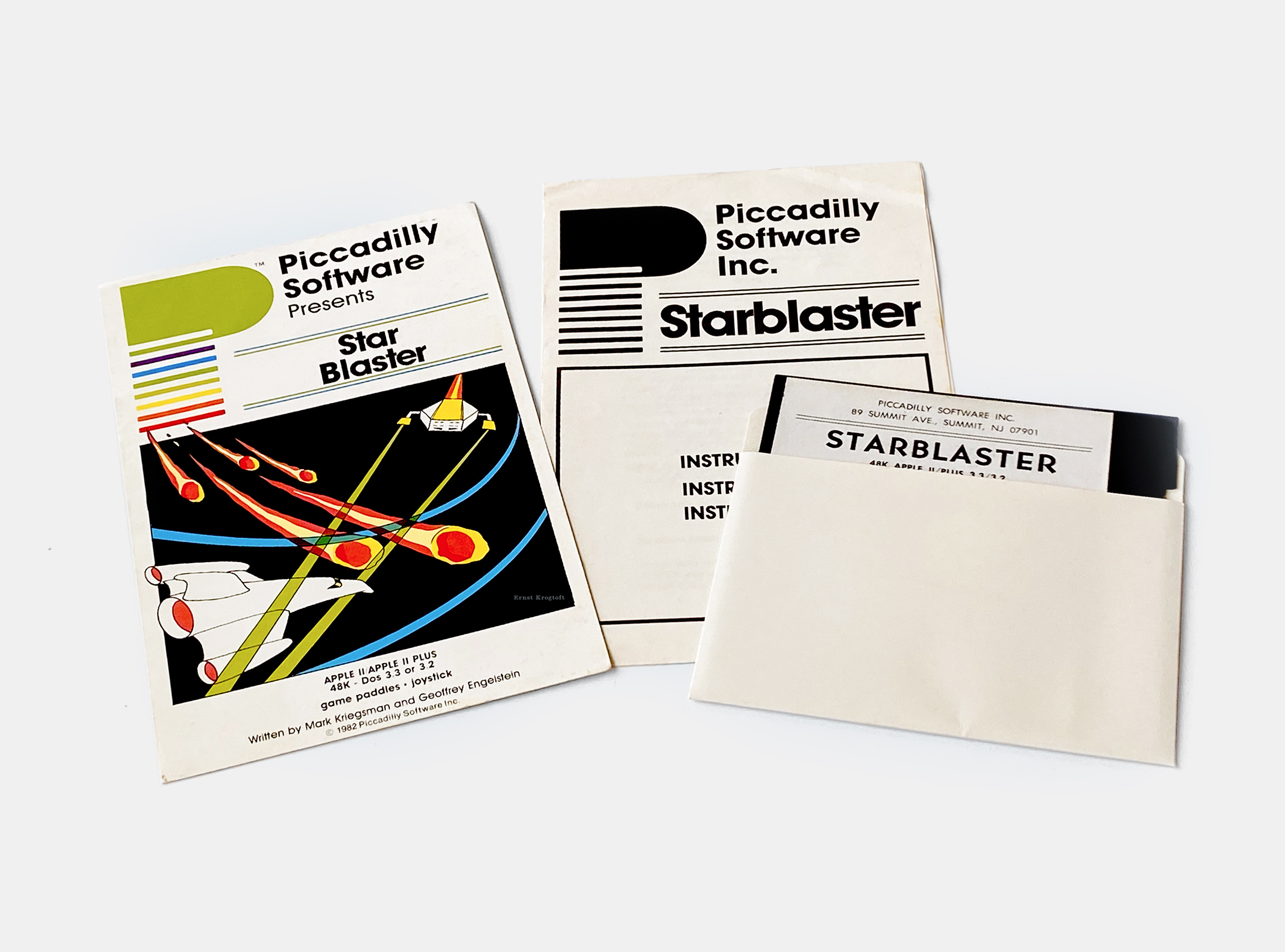Mark Kriegsman and Geoffrey Engelstein’s first and only game, Star Blaster (Starblaster), published by Piccadilly Software in 1982