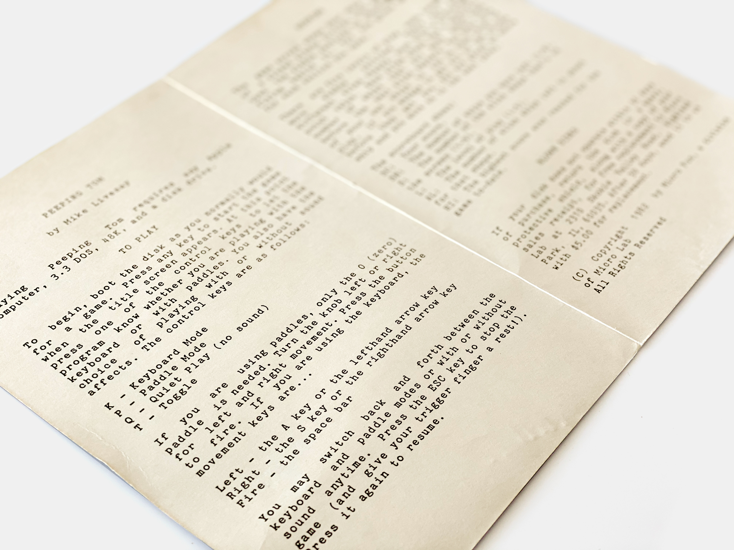 Mike Livesay’s second game, Peeping Tom, was published for the Apple II by MicroLab in 1982.