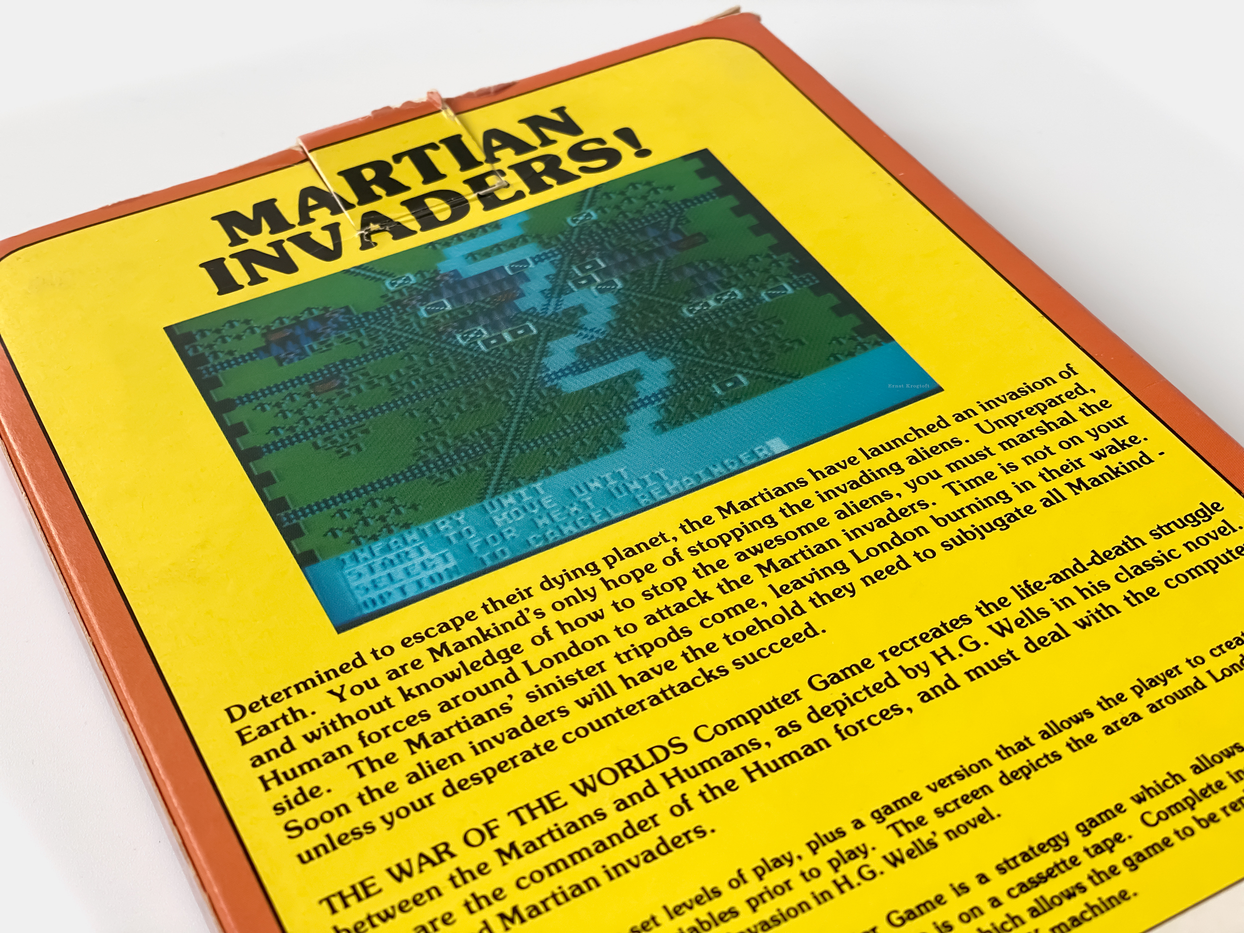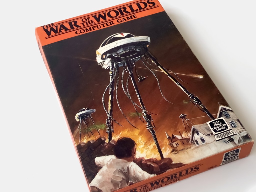 Throughout the 20th century, Wells’ The War of the Worlds science-fiction novel would stay ever-popular and influence feature films, comic books, various television series, and in 1980 game designer Tomohiro Nishikado’s video arcade mega-hit Space Invaders. In 1983 one of the first, if not the first, home computer game based on Wells’ novel was released for the Atari 8-bit by a small board game company, Task Force Games.
