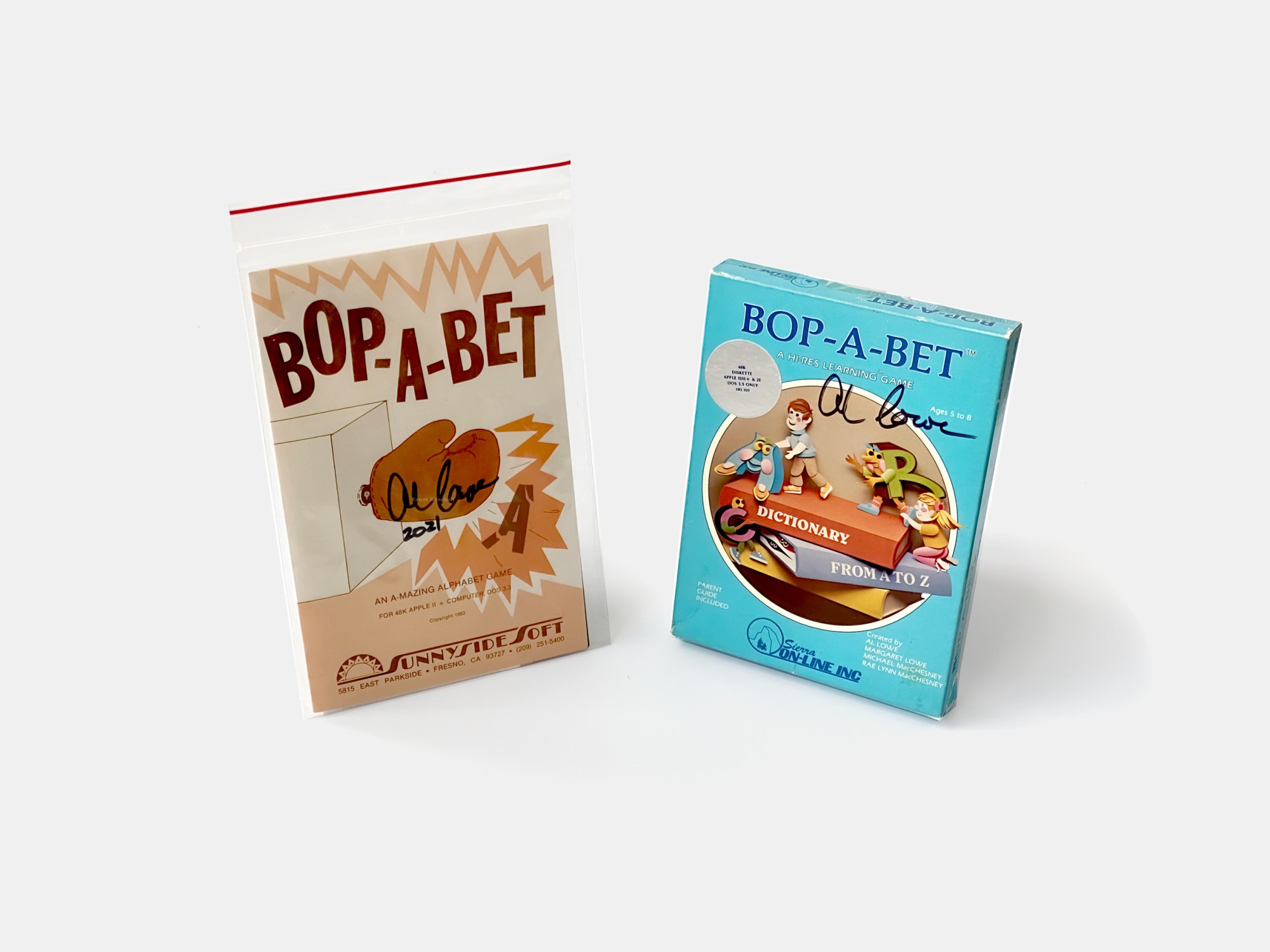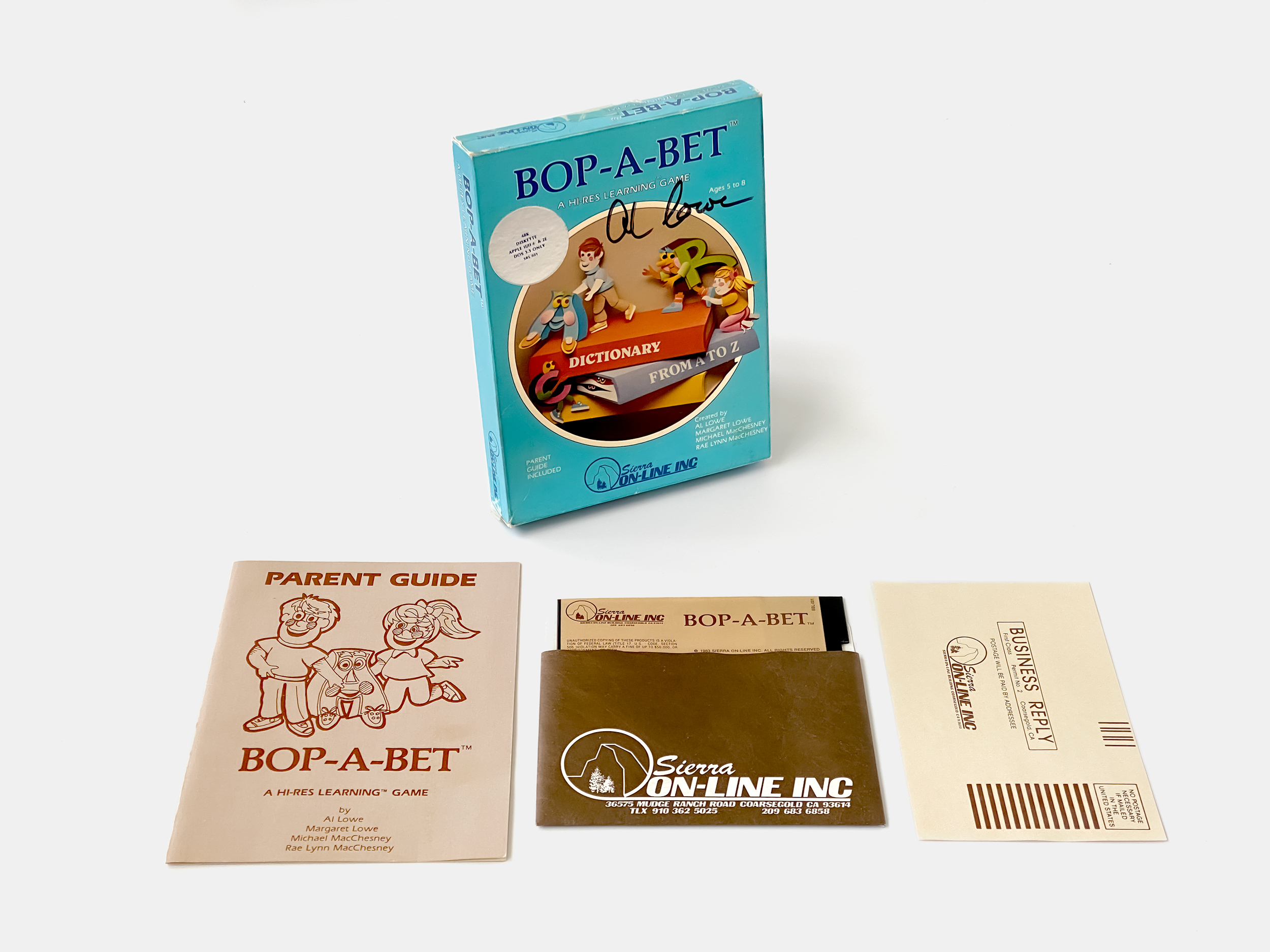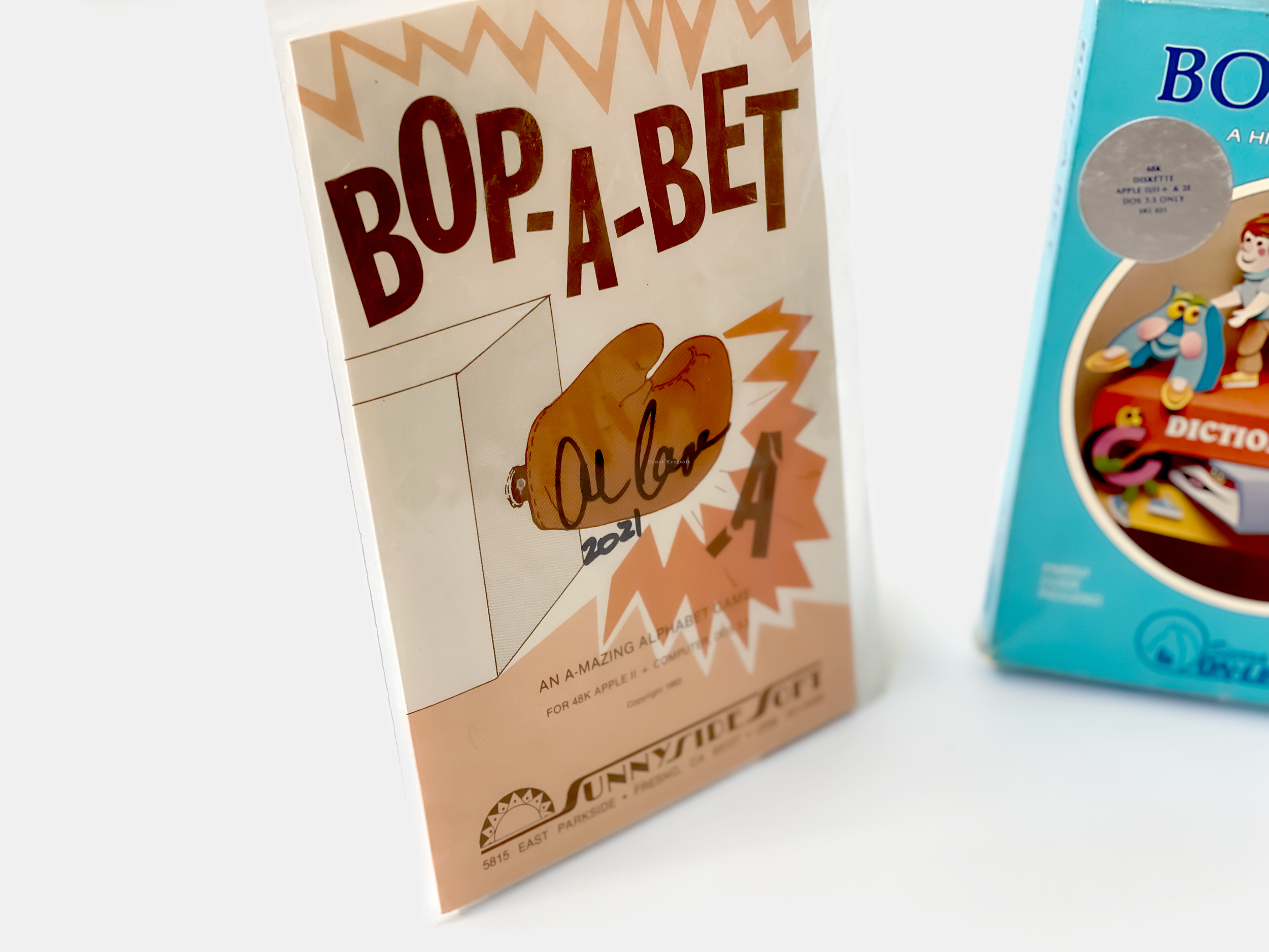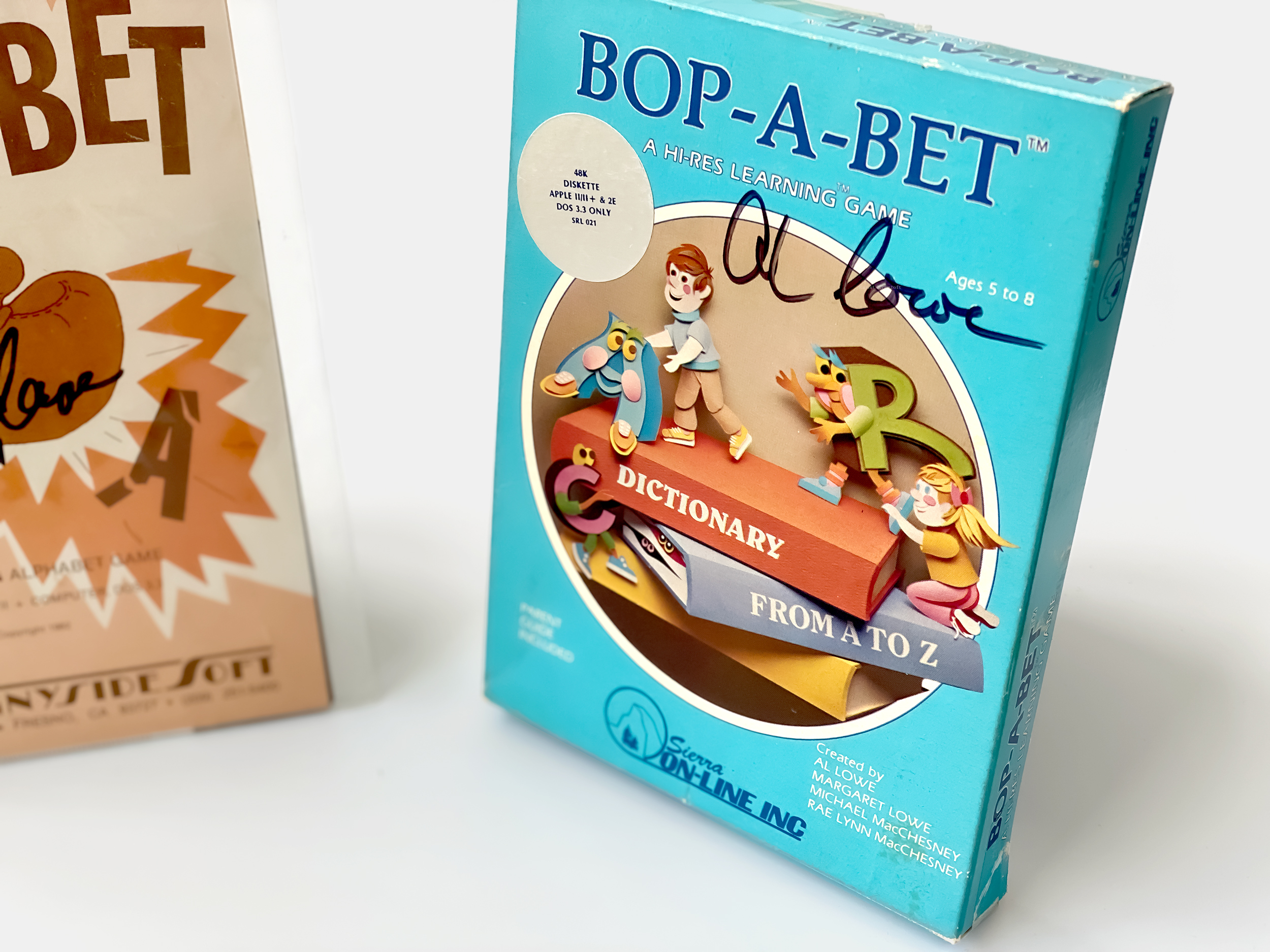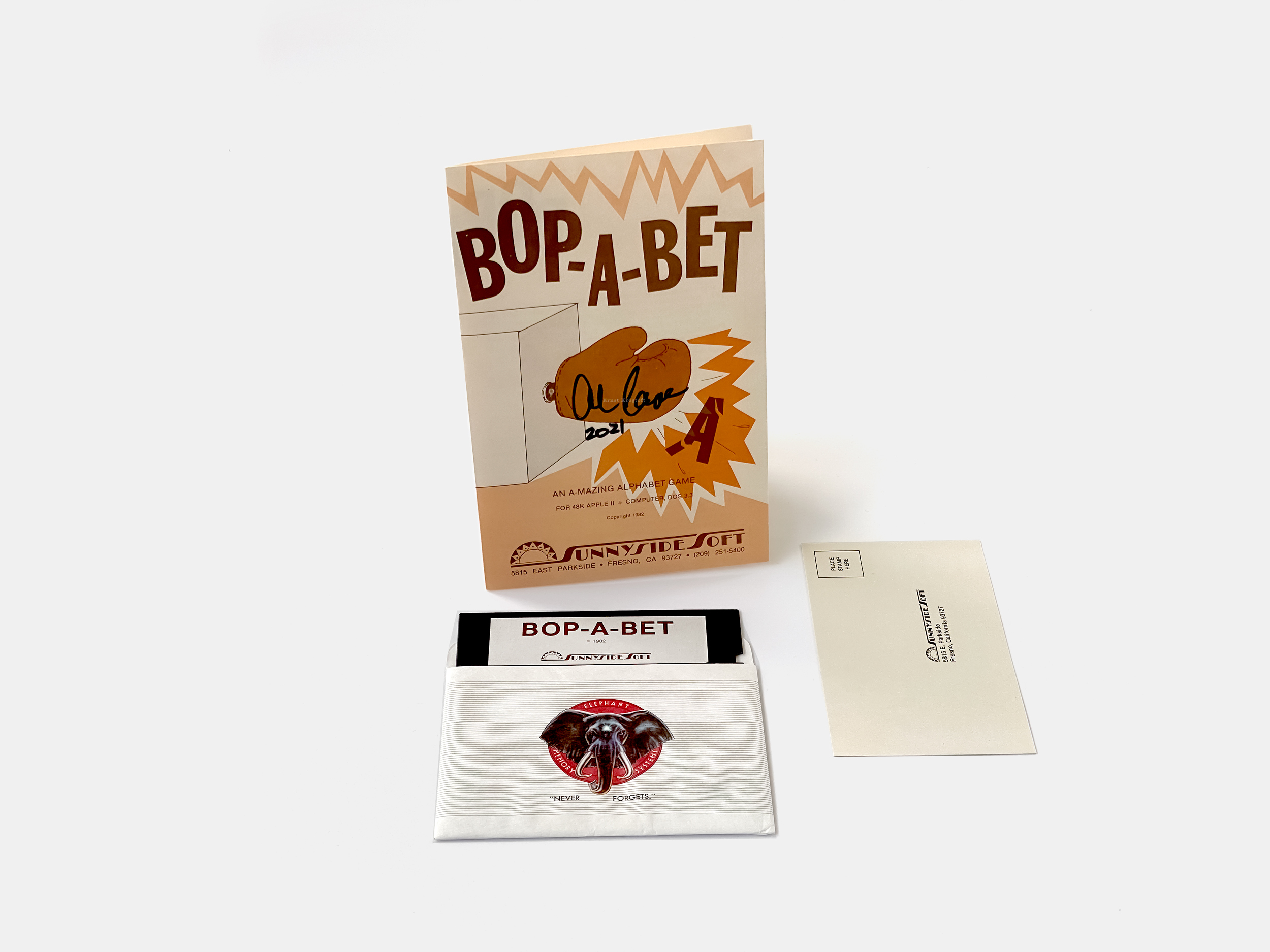 Al Lowe’s second game Bop-A-Bet, an educational game to teach kids letter recognition and alphabetization. It was released by Sunnyside Soft for the Apple II in the early autumn of 1982.