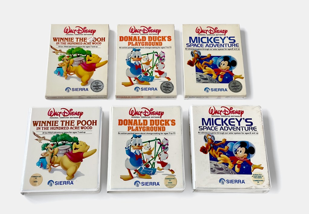 Sierra’s venture with The Walt Disney Company resulted in three educational titles published in 1984 (bottom row). The titles were later released in 1986 (top row).