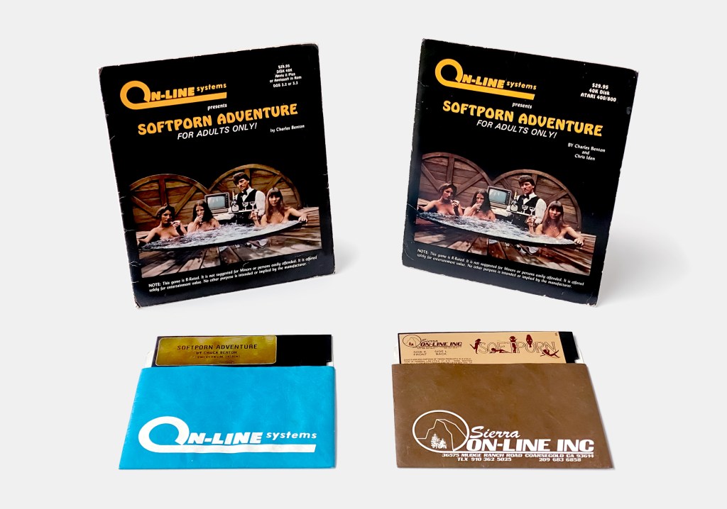 Softporn was released by On-Line Systems for the Apple II (Left) and the Atari 8-bit (Right).