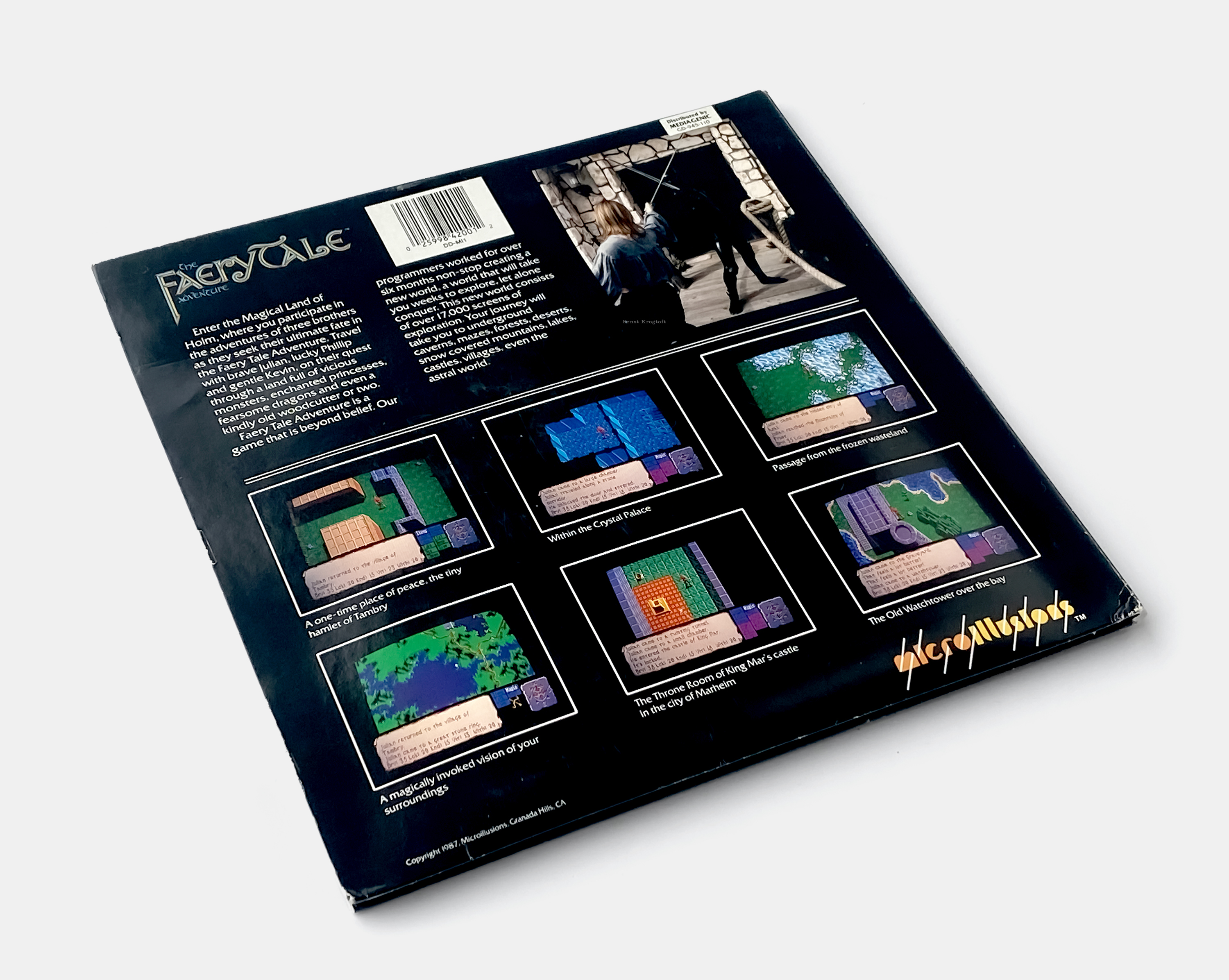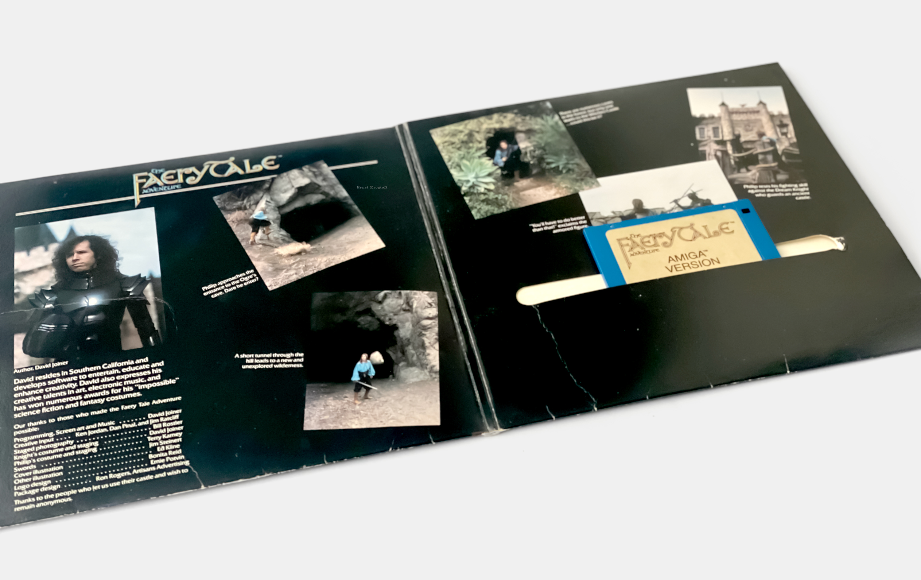 David Joiner was a jack of all trades. A comprehensive game like The Faery Tale Adventure was a perfect outlet for combining his many years of programming with his excellent creative skills. The physical product followed in Electronic Arts’ footsteps and portrayed the developer and the game in the classic album-style sleeve featuring staged tacky pictures of Joiner in his self-made Dream Knight costume.