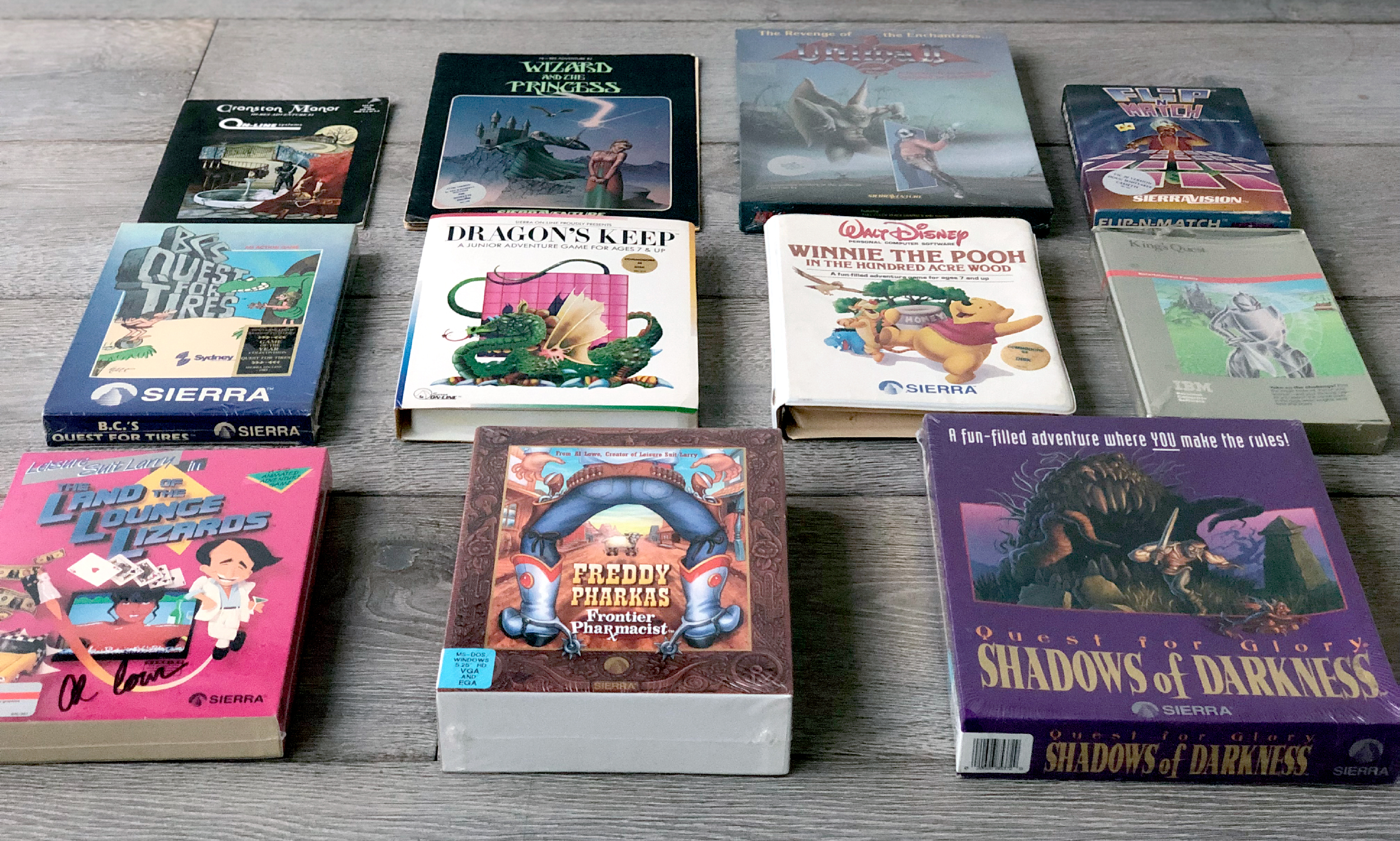 Above, a few assorted titles from my collection showcasing some of Sierra’s different form factors from the early ’80s up to the early ’90s.