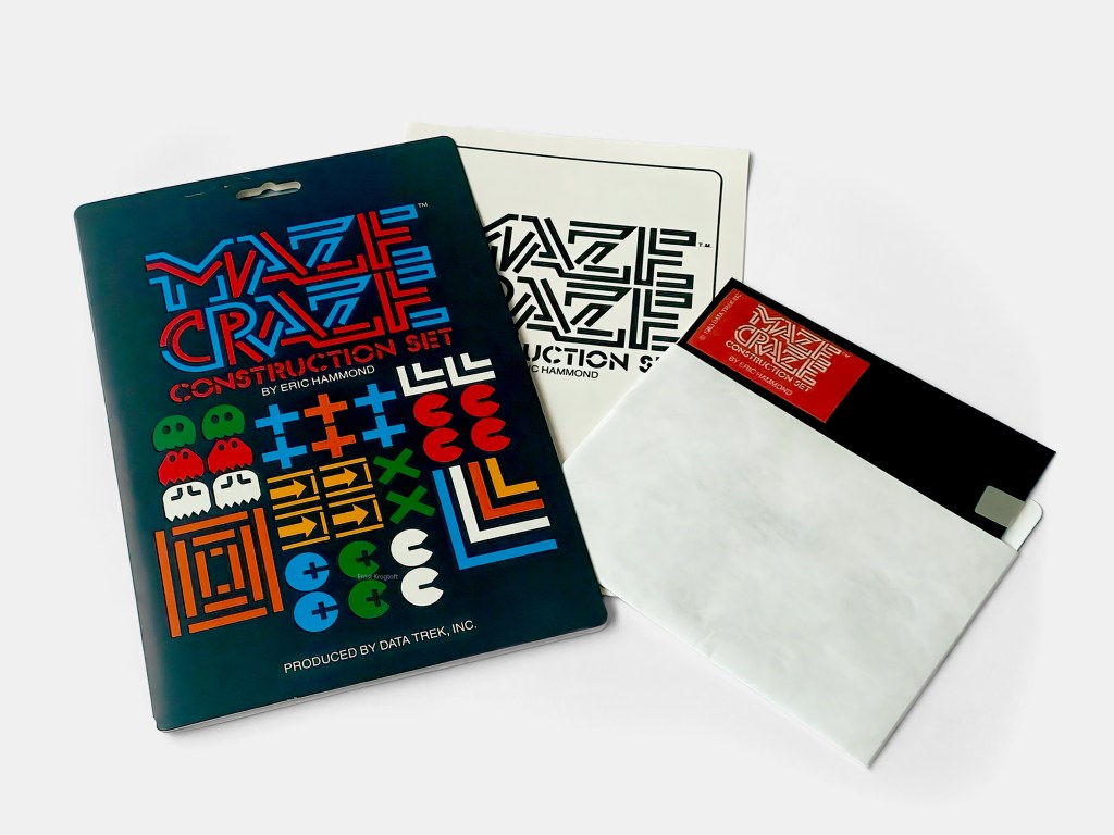 Eric Hammond’s second game, Maze Craze Construction Set, released by Data Trek, Inc. in 1983 for the Apple II