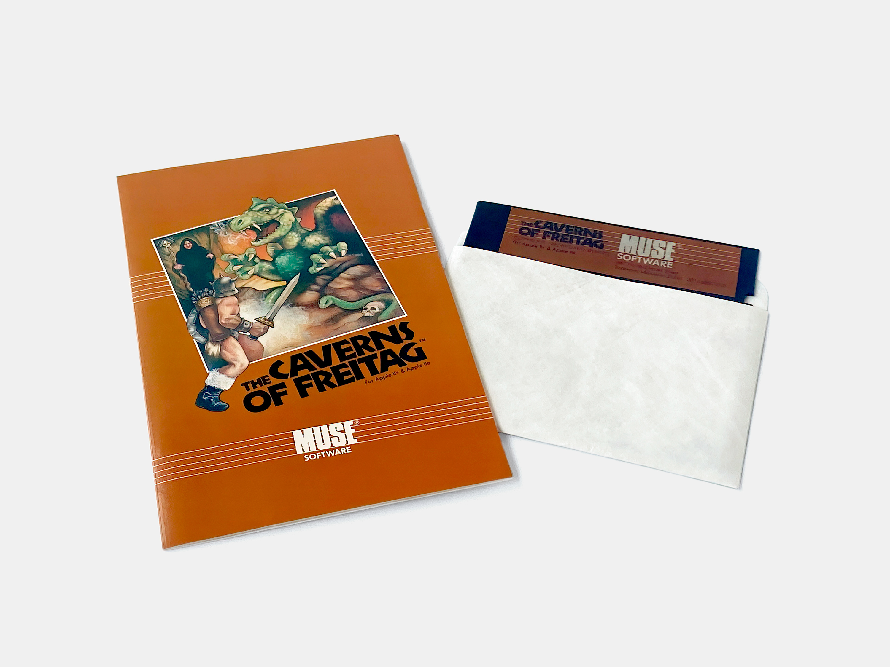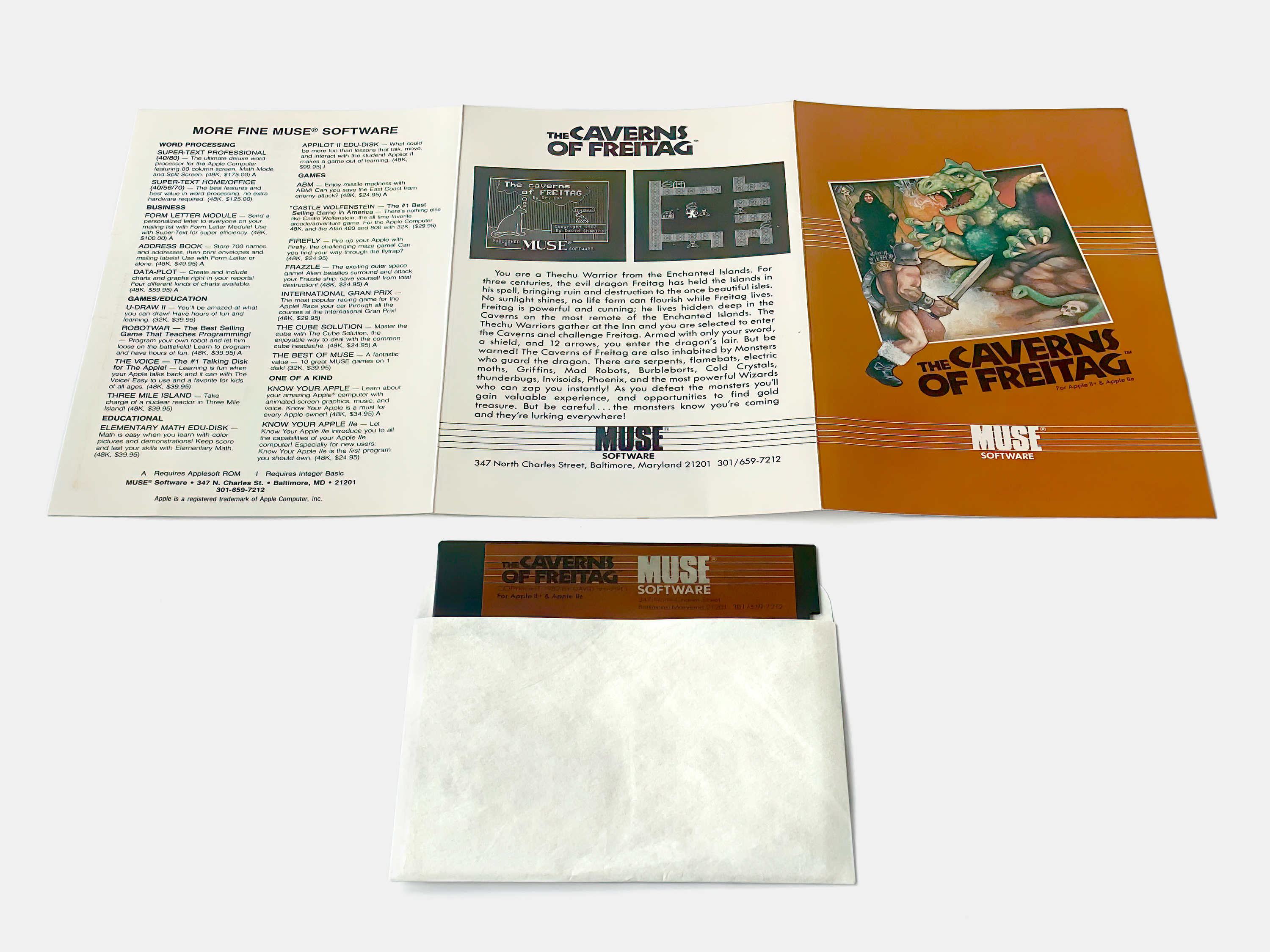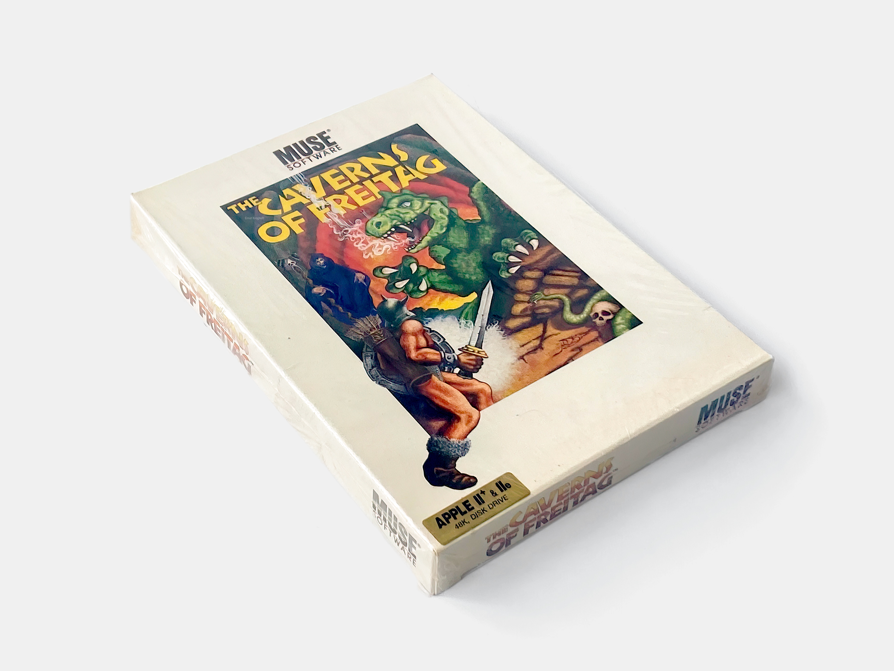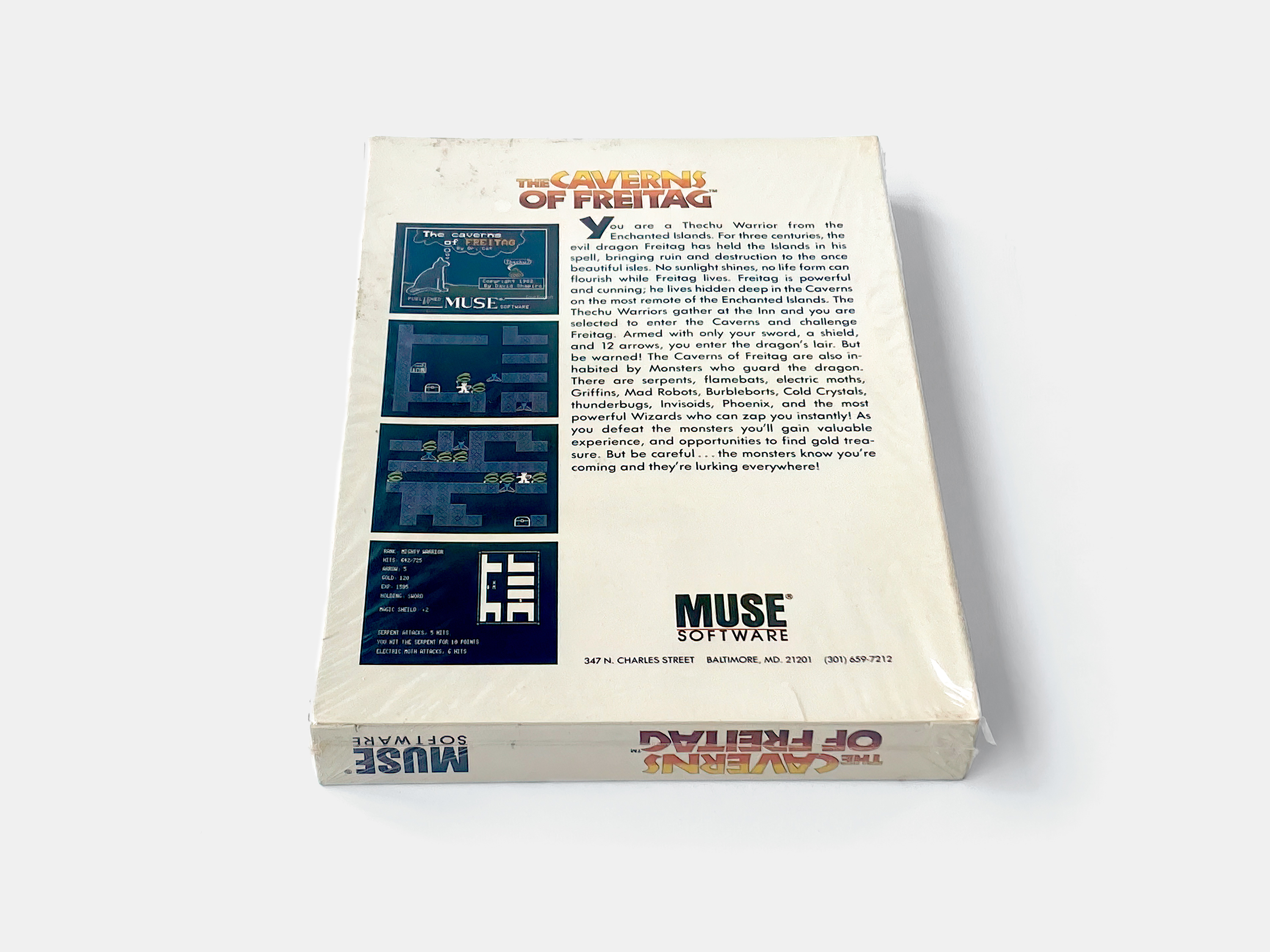 By 1983 boxed packaging was becoming the industry standard and MUSE Software re-released many of its titles, including The Caverns of Freitag