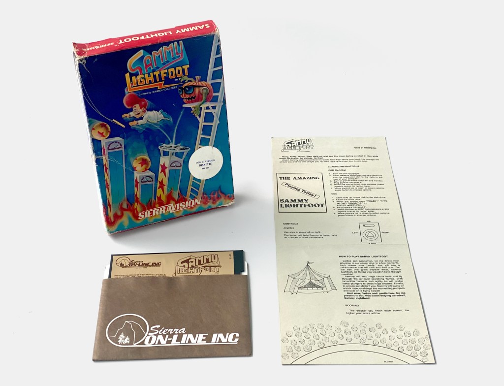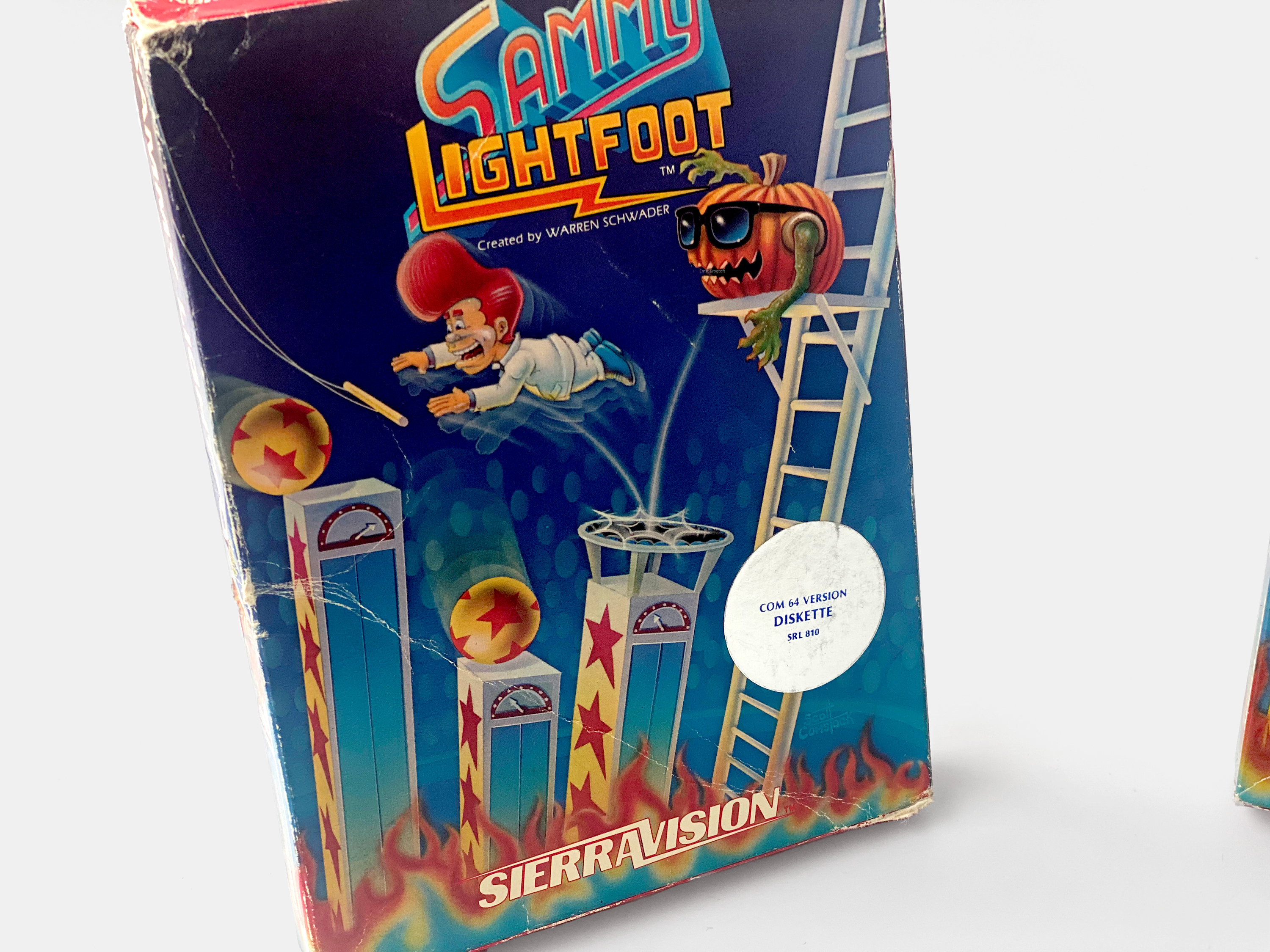 Sammy Lightfoot was published by Sierra On-Line for the Apple II and Commodore 64 in 1983. The commodore version, recreated by Dean Creehan, was released on both floppy and cartridge.