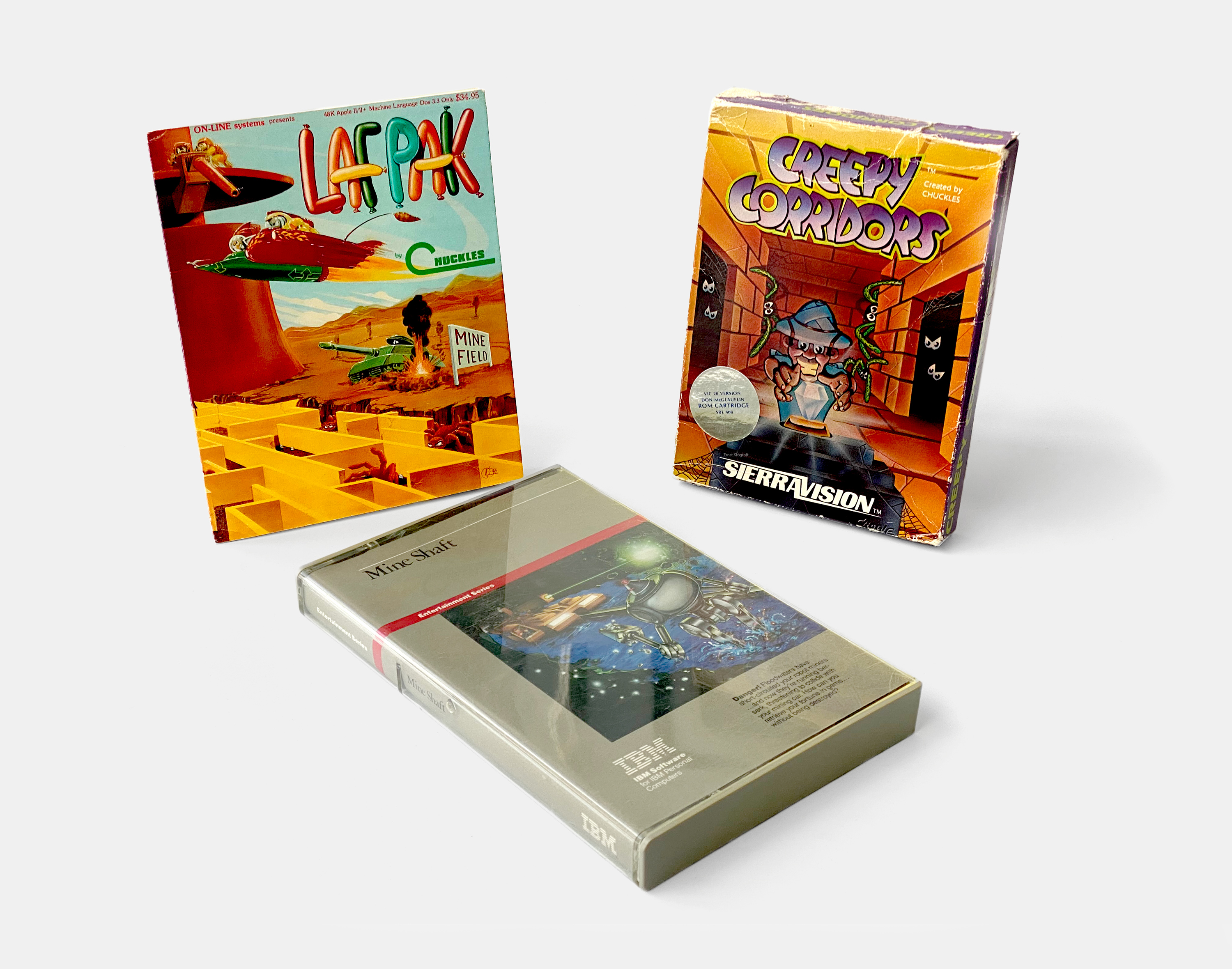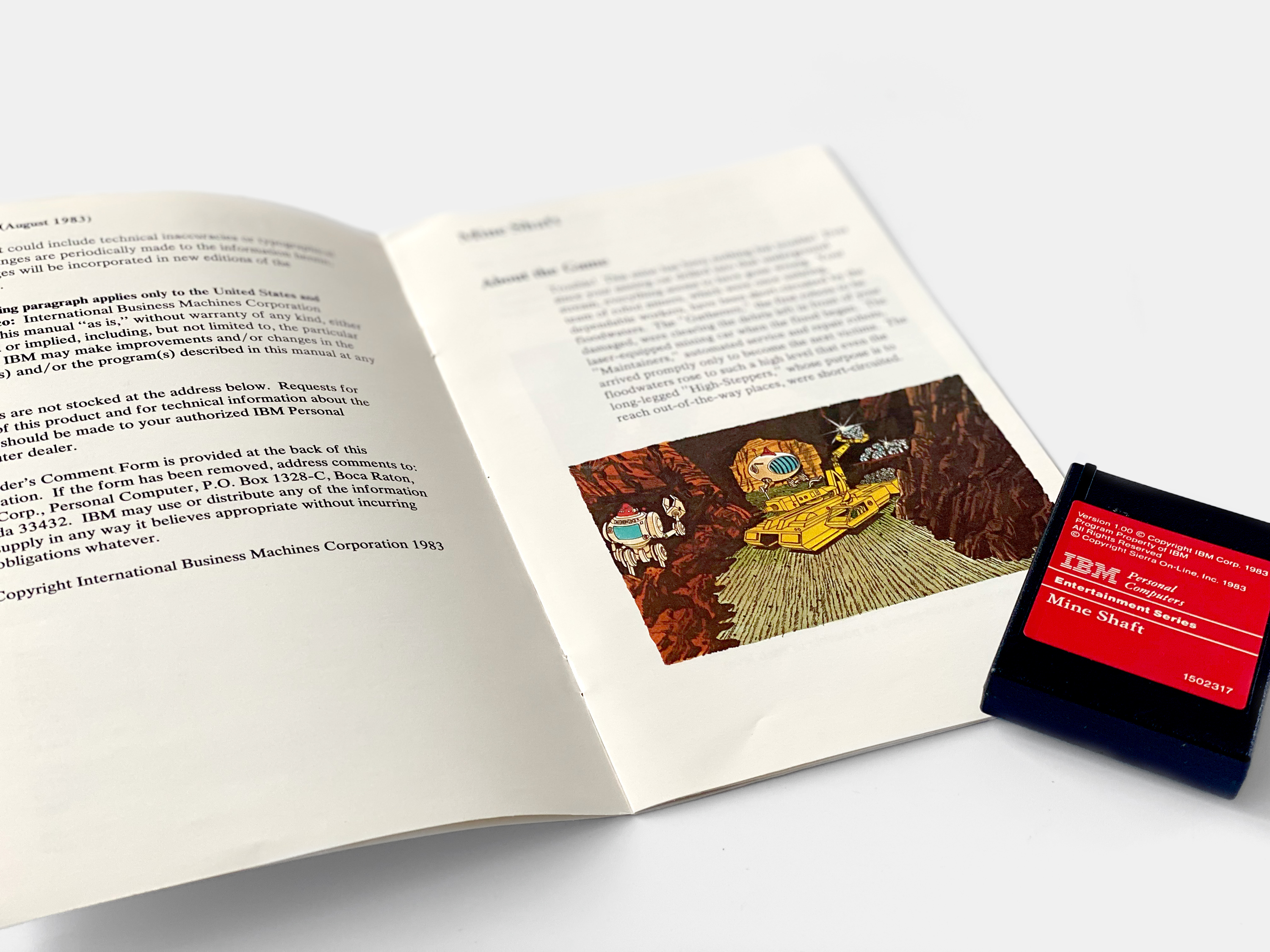 The relationship with IBM also amounted to a few earlier games being ported to the IBM PC and PCjr in IBM’s Entertainment Series. One of the games was Bueche’s Creepy Corridors, which was ported by John Redekopp and released as Mine Shaft in March of 1984 when the IBM PCjr became available.