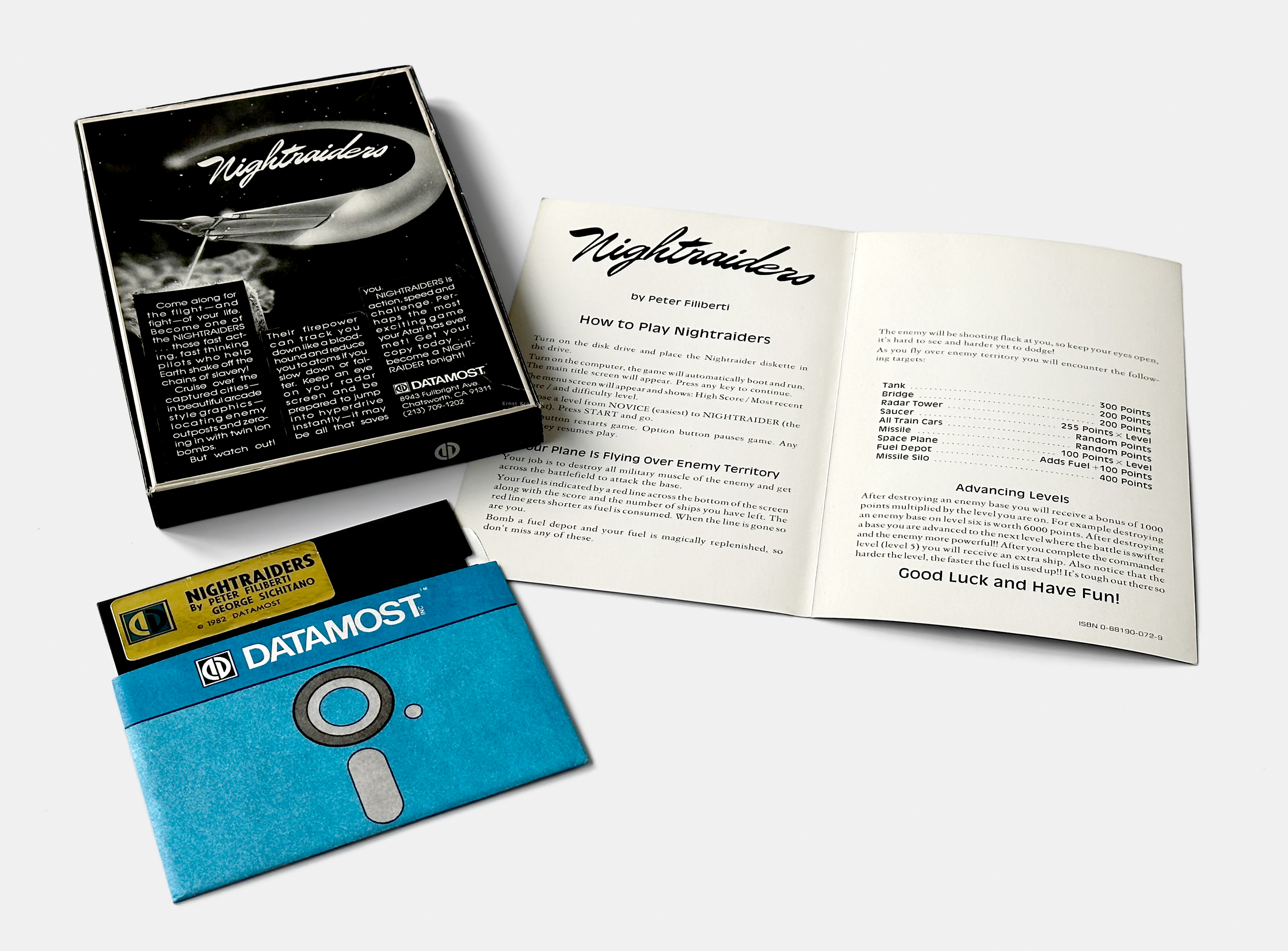 American entrepreneur Dave Gordon had just parted ways with the Hayden Book Company which had purchased his company Programma International, one of the very first publishers of personal computer software and at the time the biggest distributor of Apple II software in the world. While enthusiastic about the acquisition and the new possibilities, Gordon clashed with the Hayden executives and was fired in the spring of 1981. With the intent of continuing to publish technical books, games, and software for the 8-bit machines of the era he established Datamost, Inc. out of Chatsworth, California. One of the games released by his company was Filiberti’s Nightraiders, published for the Atari 400/800 in 1983.