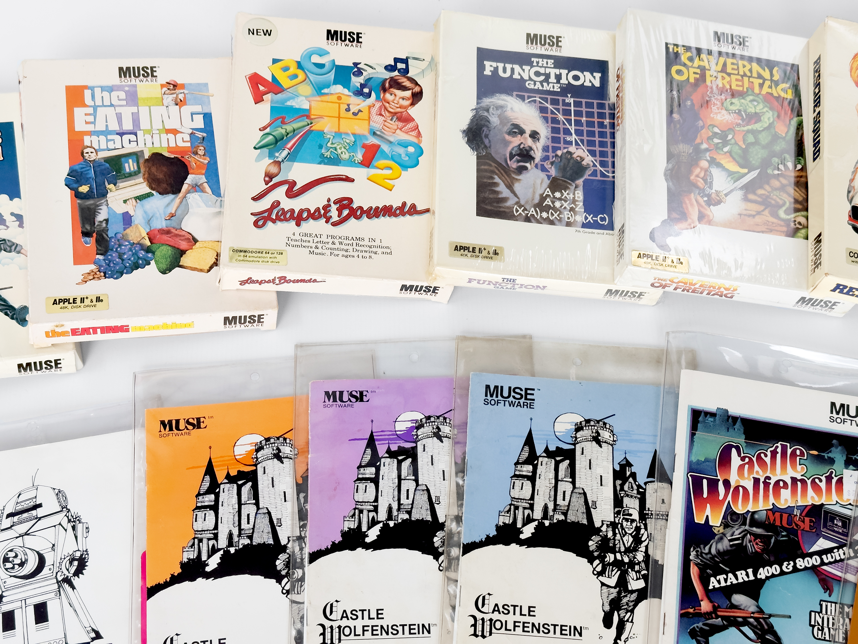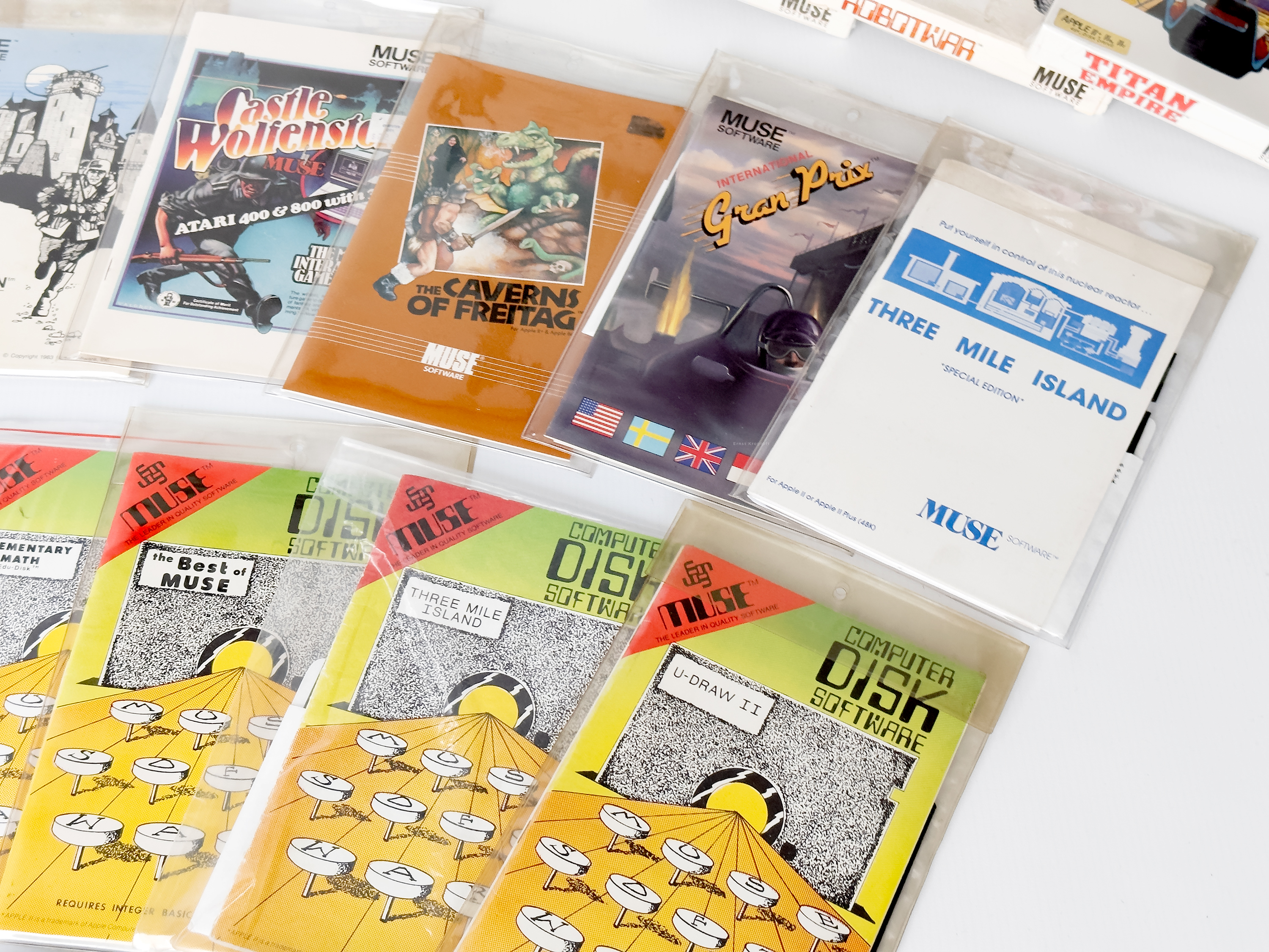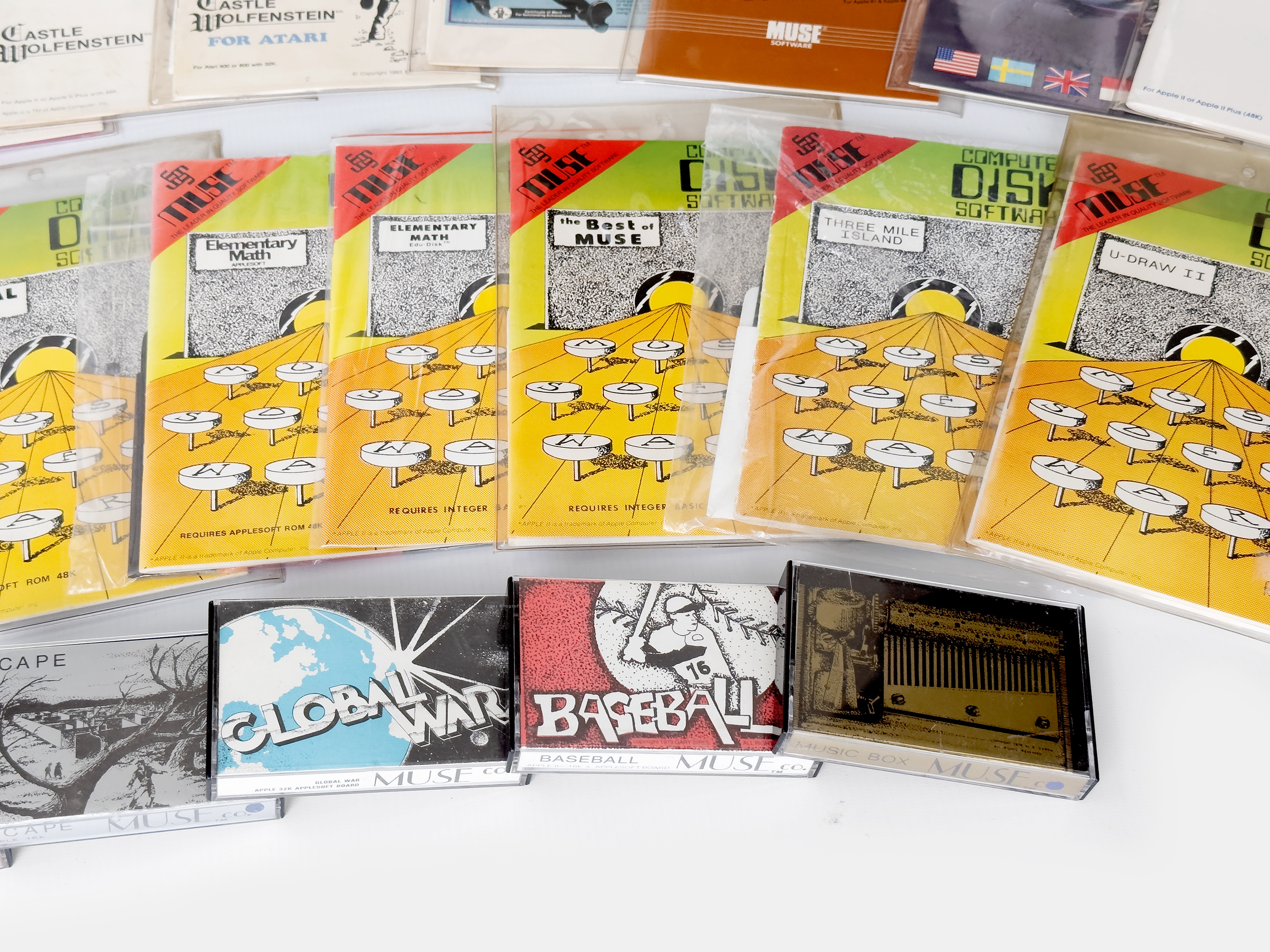 While initially focusing on software for the Apple II the company soon expanded its offerings to other 8-bit home computers of the time and opened a retail store on the corner of Charles Street and Mulberry Street in Baltimore, called Muse Software and Computer Center.