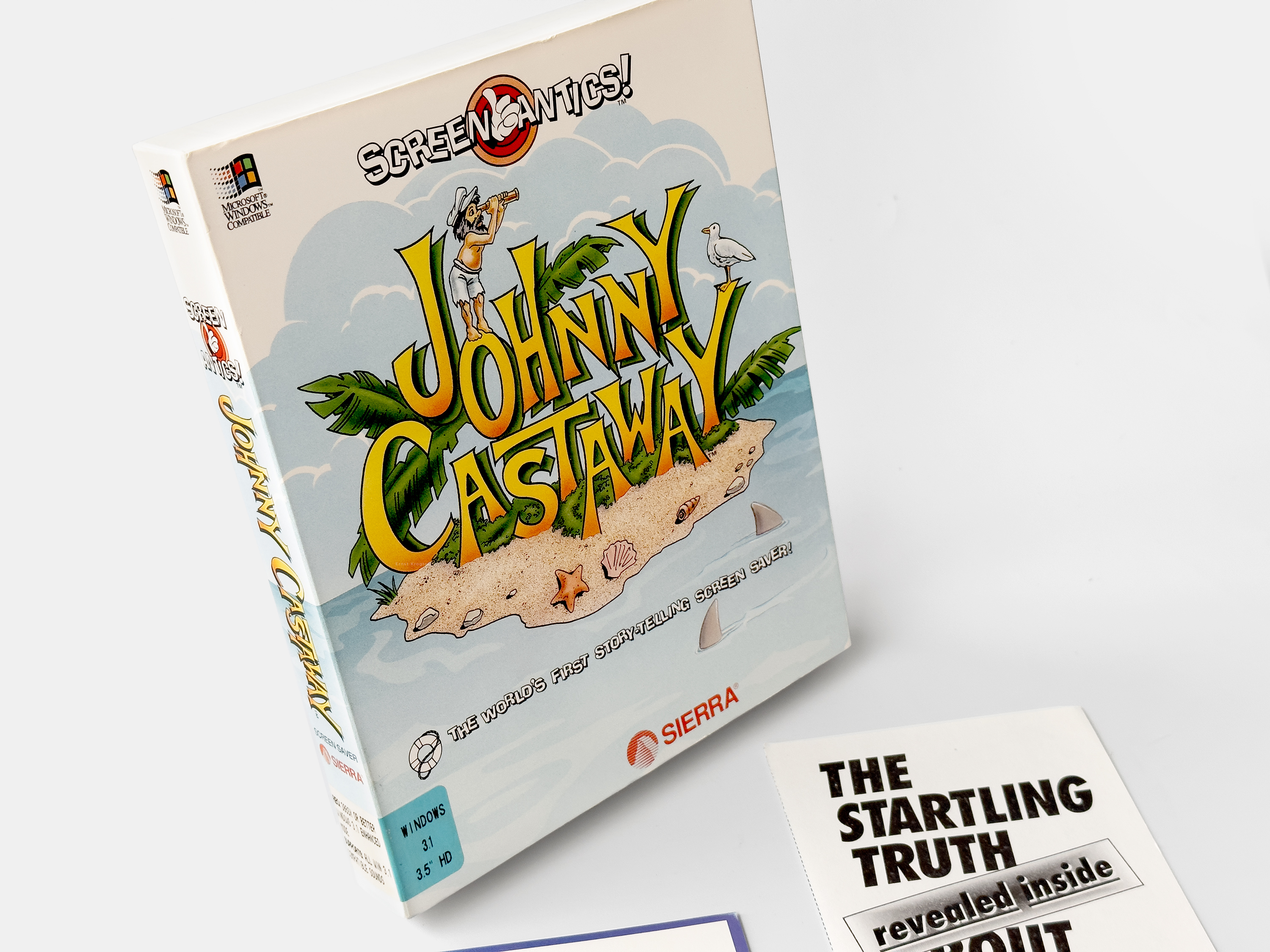 Johnny Castaway was released for Windows 3.1 and was marketed as the first Windows-based screensaver to actually tell a story. It was created by Jeff Tunnell Production with lead designer Chris Cole and art director Brian Hahn. Cole and Hahn came up with and produced all the gags while animator Sherry Wheeler made much of the animations. The screensaver tells the story of Johnny Castaway and his ongoing attempt to escape a very small tropical island. The story slowly unfolds as the year progresses, with special episodes keyed to important dates. Much like the castaways of Gilligan’s Island, Johnny repeatedly comes close to being rescued but ultimately remains on the island as a result of various unfortunate incidents.