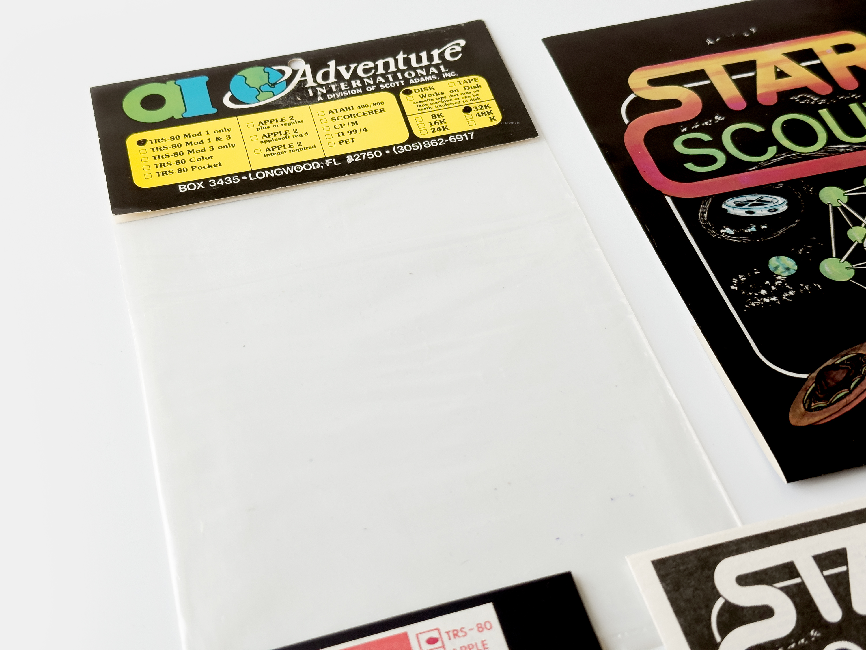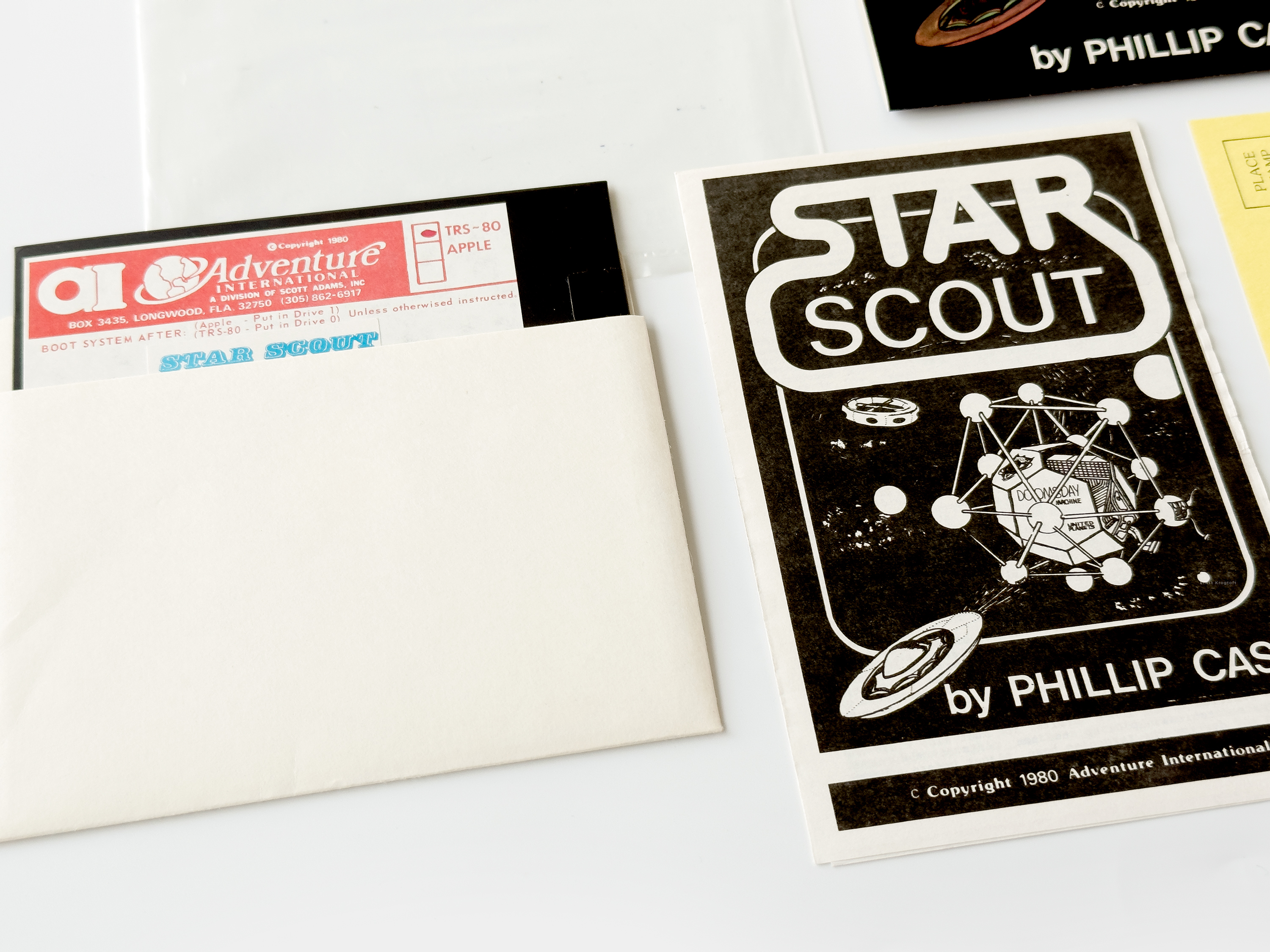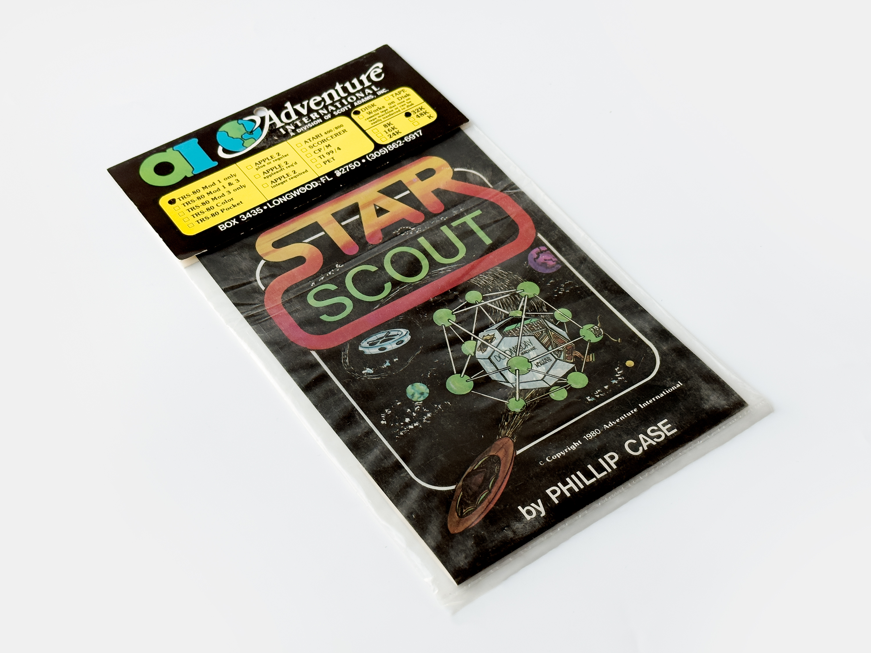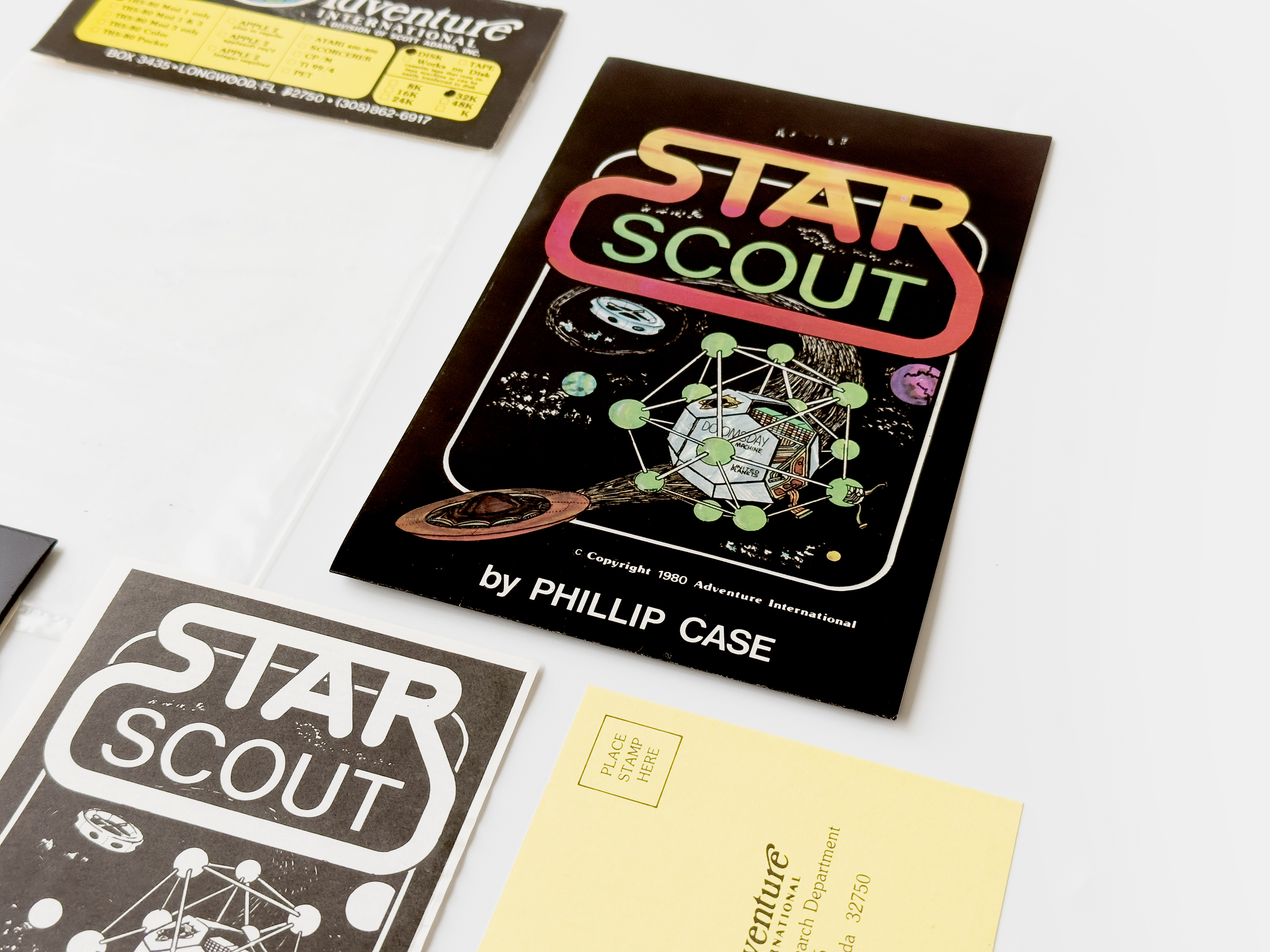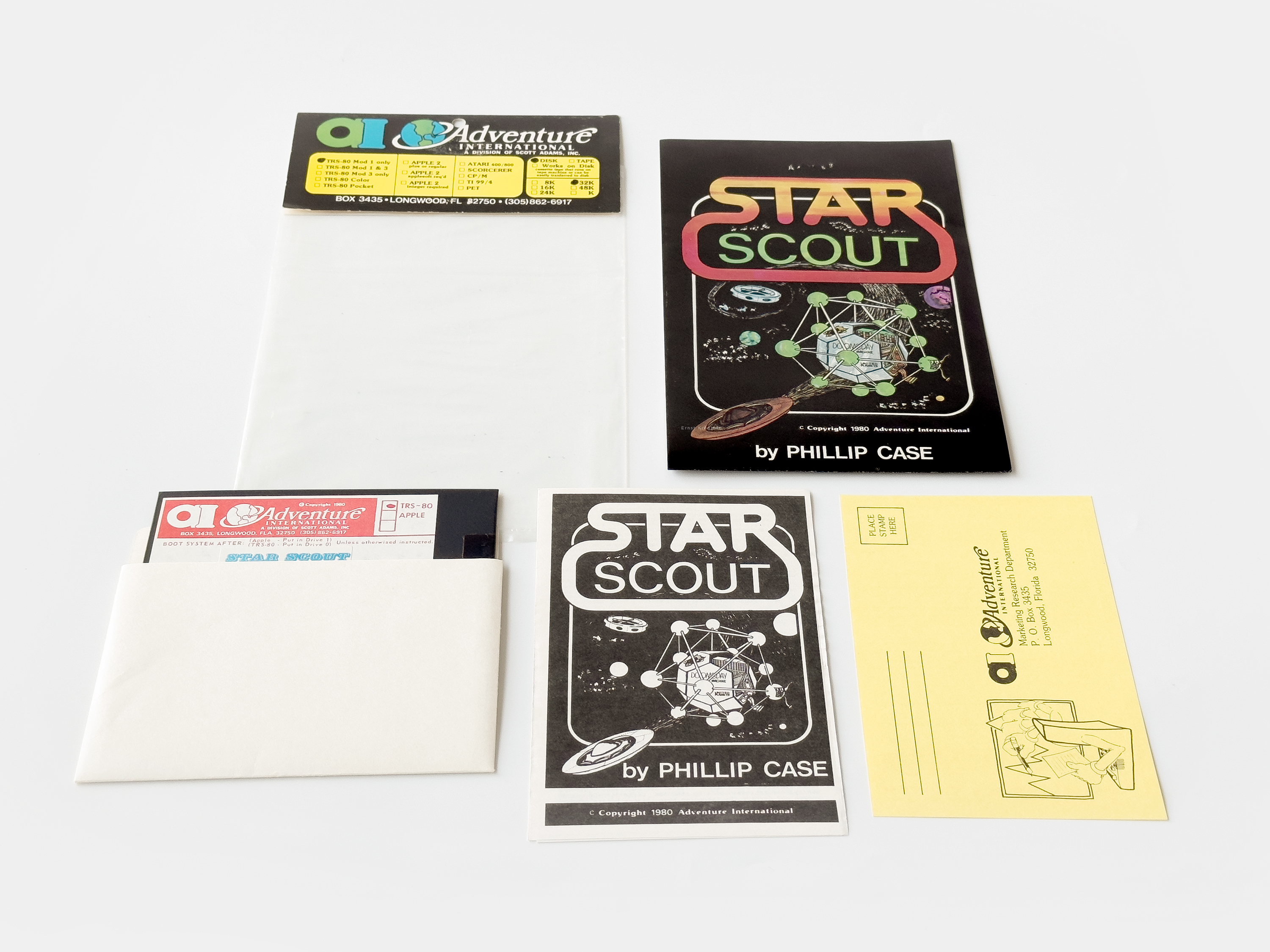 When completed Star Scout was picked up by Scott AdamsAdventure International. Adams had seen much success with his early text adventure games published by TRS-80 Software Exchange and had in 1979, together with his then-wife Alexis, established Adventure International. Besides releasing his own games he started distributing software from other developers, Space Scout being one of the earlier, released in 1980 on cassette and floppy.