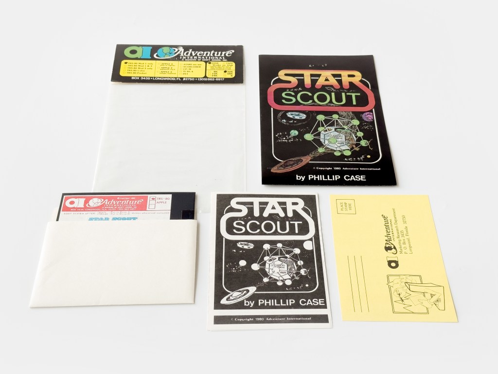 Philip Case’s graphical real-time space simulation, Star Scout was picked up by Adventure International and published in 1980