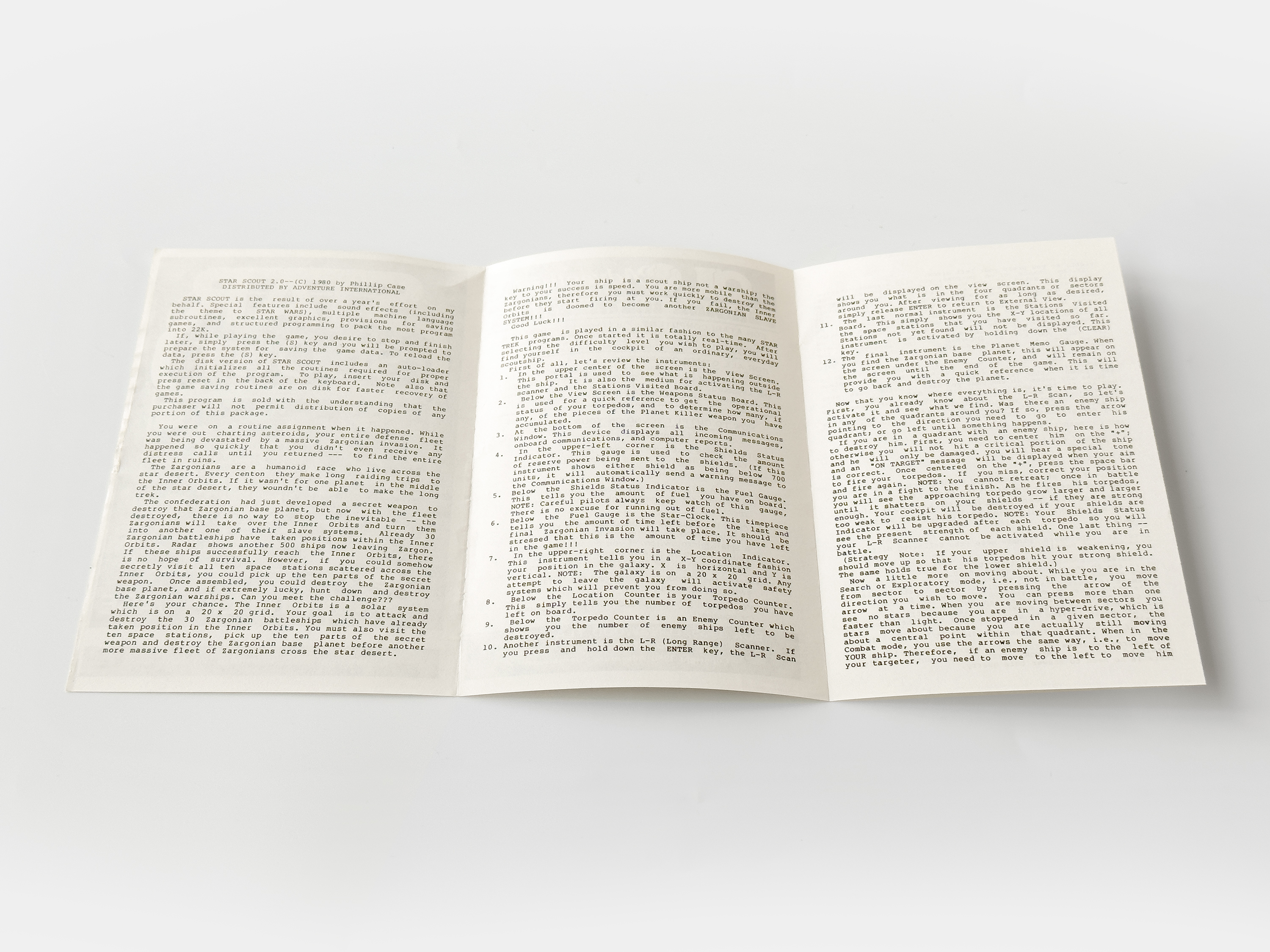 Case, in 1980, would continue to update Star Scout from the initial 1.0 version. In 1983, after having worked on a few games published by other publishers he returned to Adventure International to help with game conversions before designing his last game with the company, The Adventures of Buckaroo Banzai: Across the Eighth Dimension.
