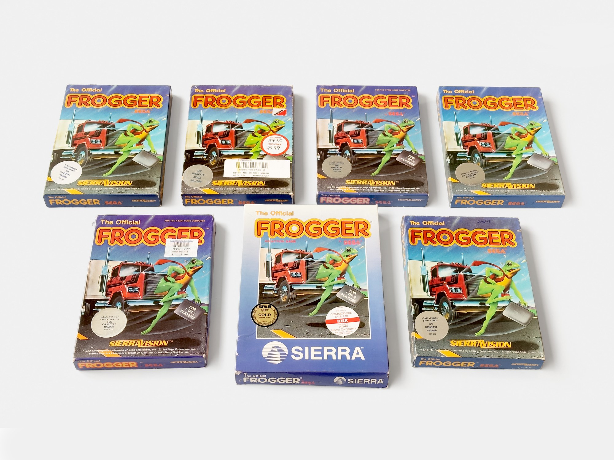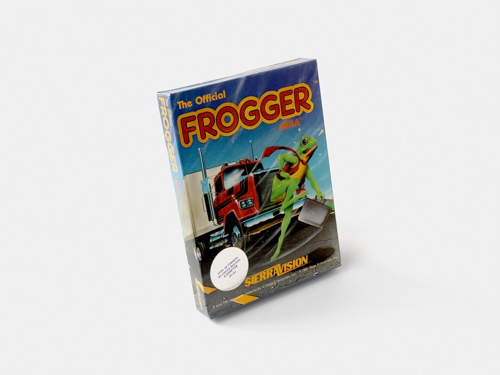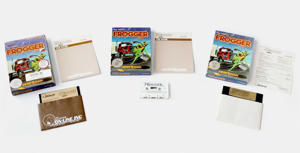 John Harris’ Atari 8-bit cassette and floppy versions of Frogger were published under Sierra On-Line’s short-lived SierraVision label in late 1982.