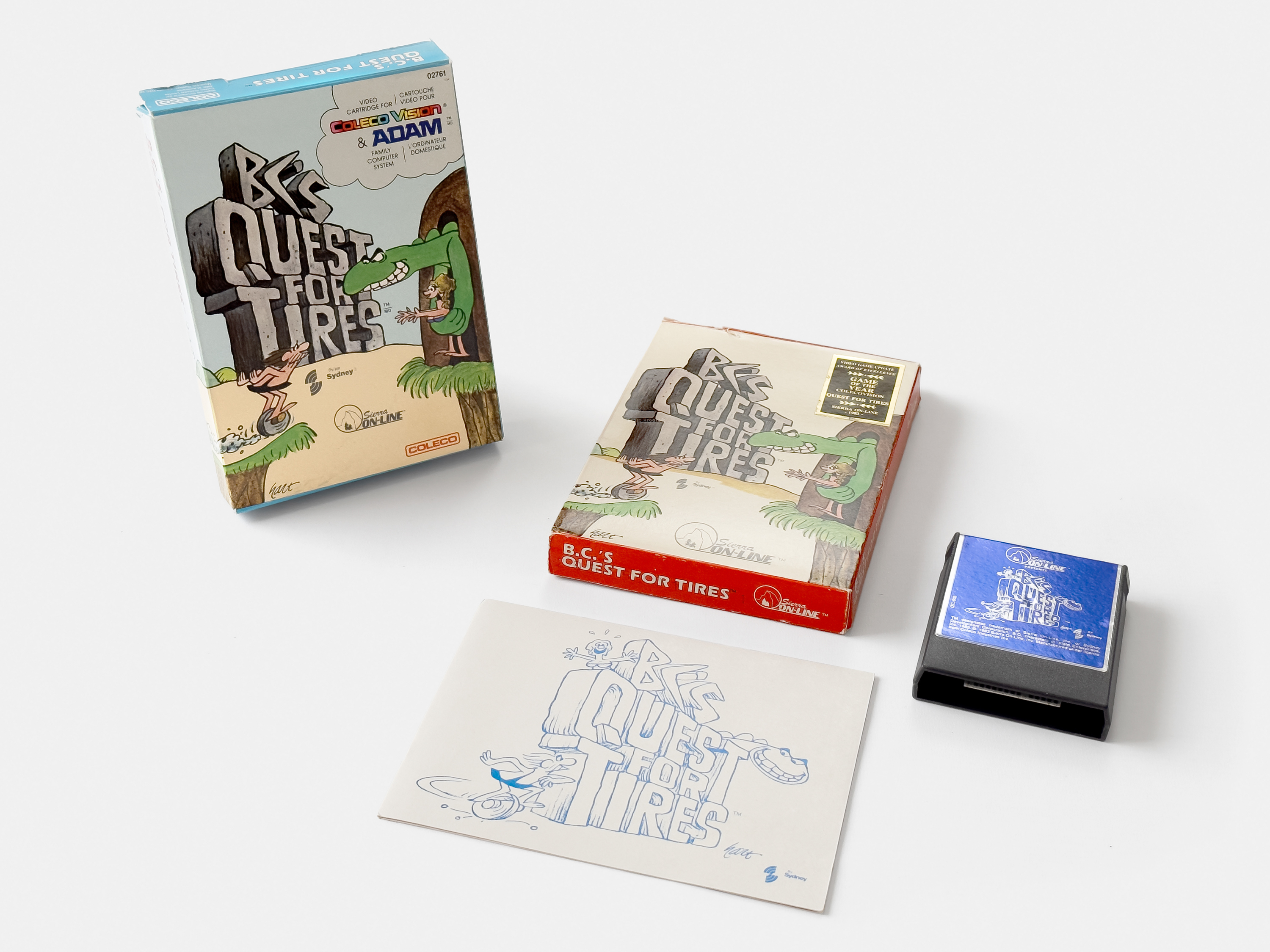 B.C.’s Quest for Tires became the first video game cartridge to be designed and produced in Canada and became an instant hit. It won Game Of The Year from Video Game Update magazine and was awarded Critic’s Choice Award, Best Game For Youngsters by Family Computing. Billboard Magazine awarded it the Best Use of Graphics and Best Sound in a Video Game. Combined the title would go on to sell more than a million copies. The commercial success spawned the 1984 sequel B.C. II: Grog’s Revenge which never achieved the same popularity.