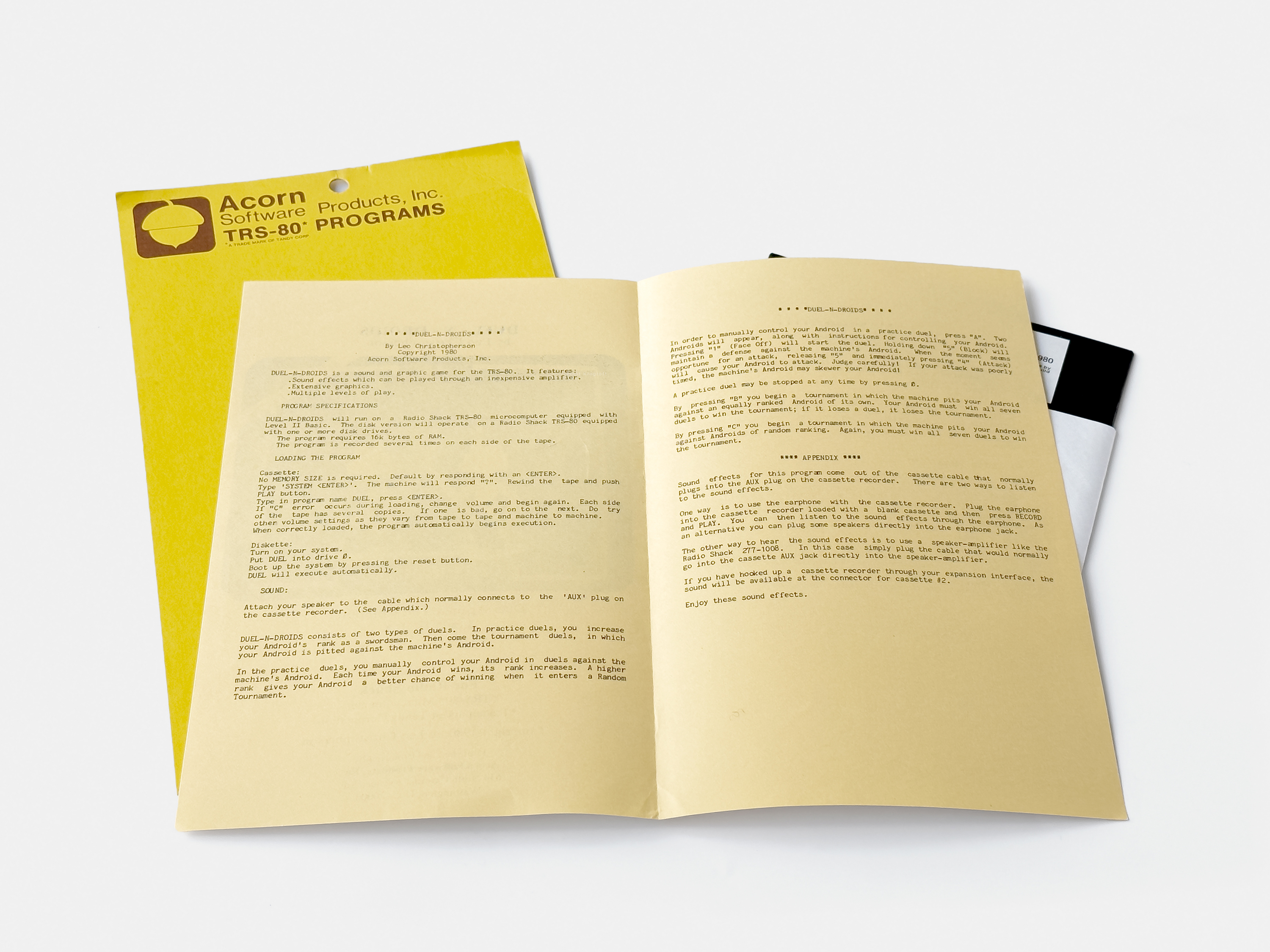 Leo Christopherson’s Duel-N-Droids was picked up by Acorn Software Products, which specialized in early TRS-80 Software, and published in 1980