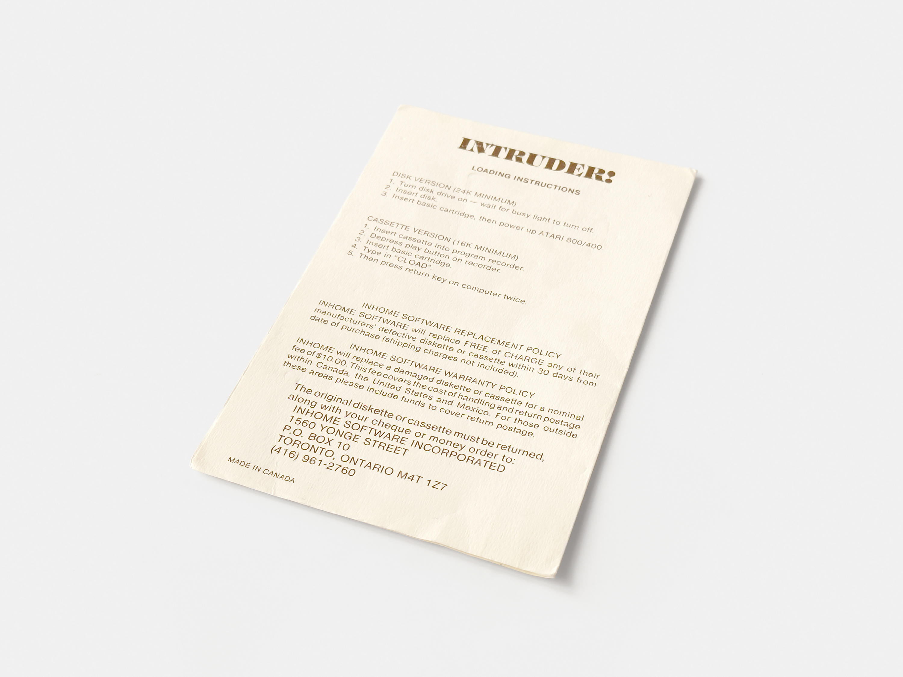 Intruder! was published by small Canadian publisher Inhome Software Inc. for the Atari 400/800 in 1982