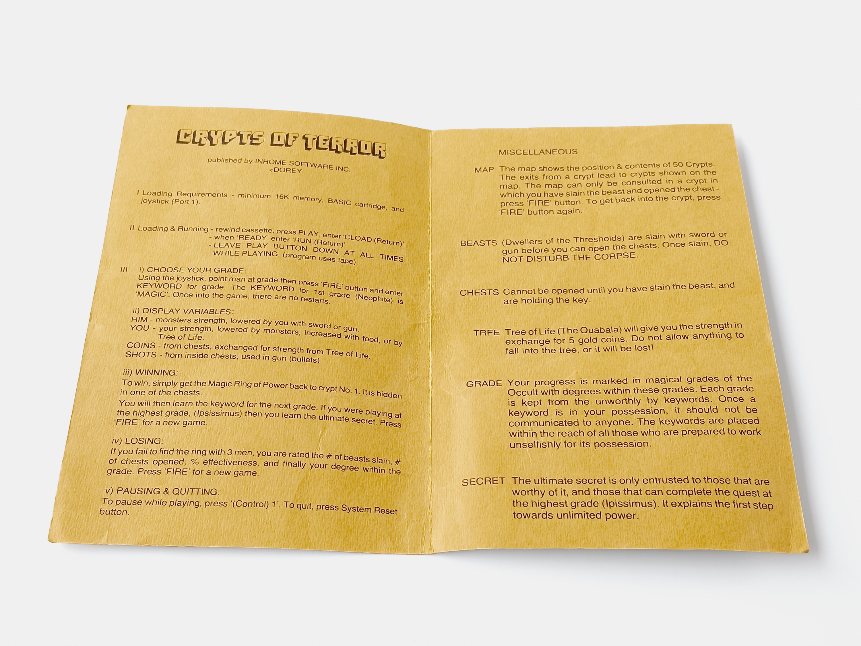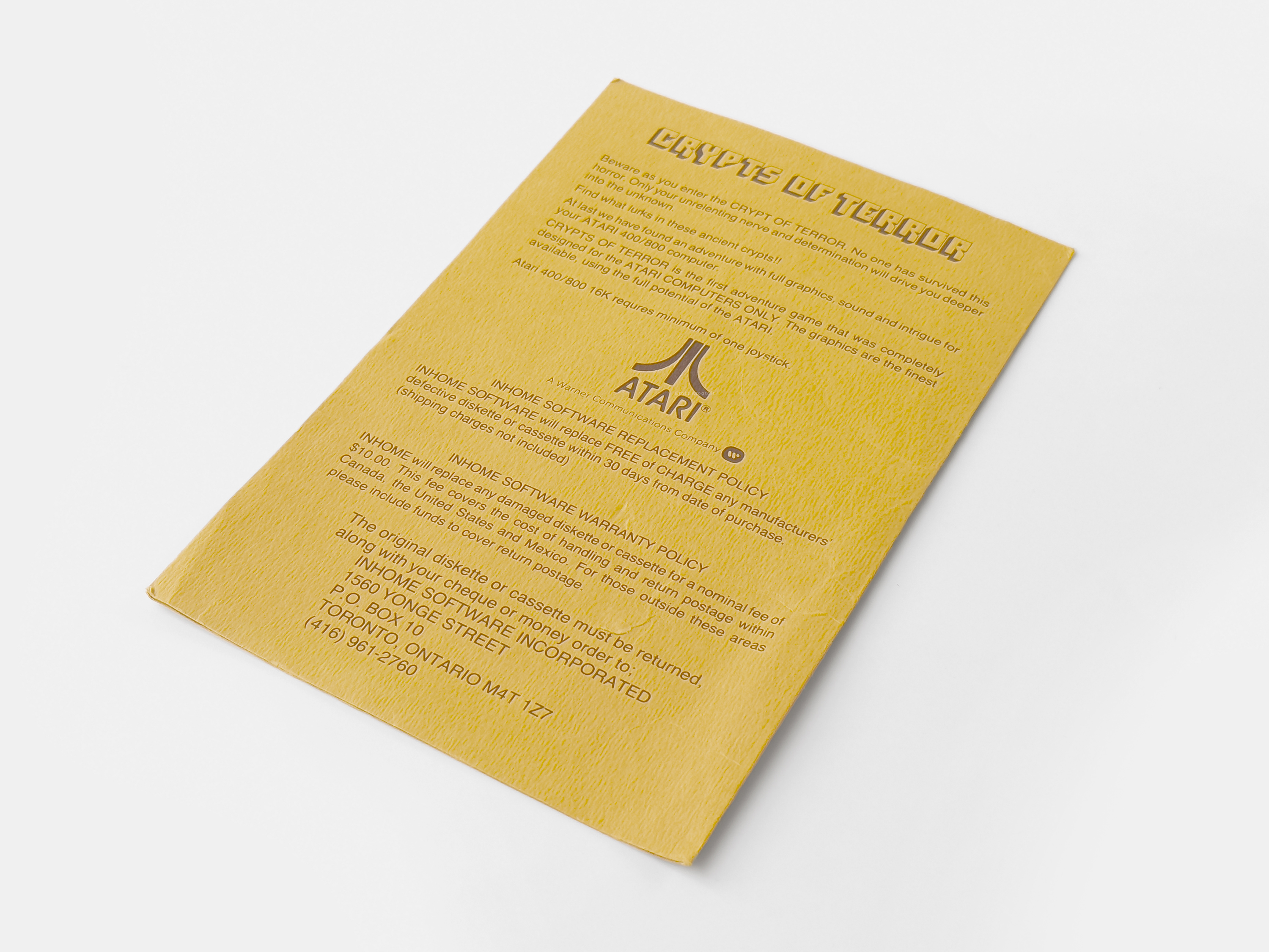 Daniel Dorey’s Crypts of Terror was released on cassette and disk for the Atari 400/800 in 1981 by Canadian Inhome Software.