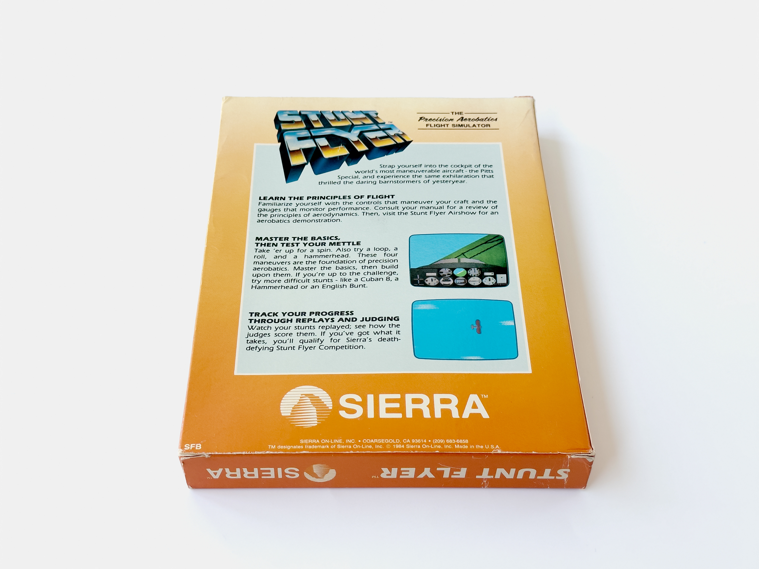 Stunt Flyer came with a 48-page elaborate manual, introducing the player to the principal of aerodynamics and the world of aerial acrobatics with many of the most popular maneuvers described in detail.