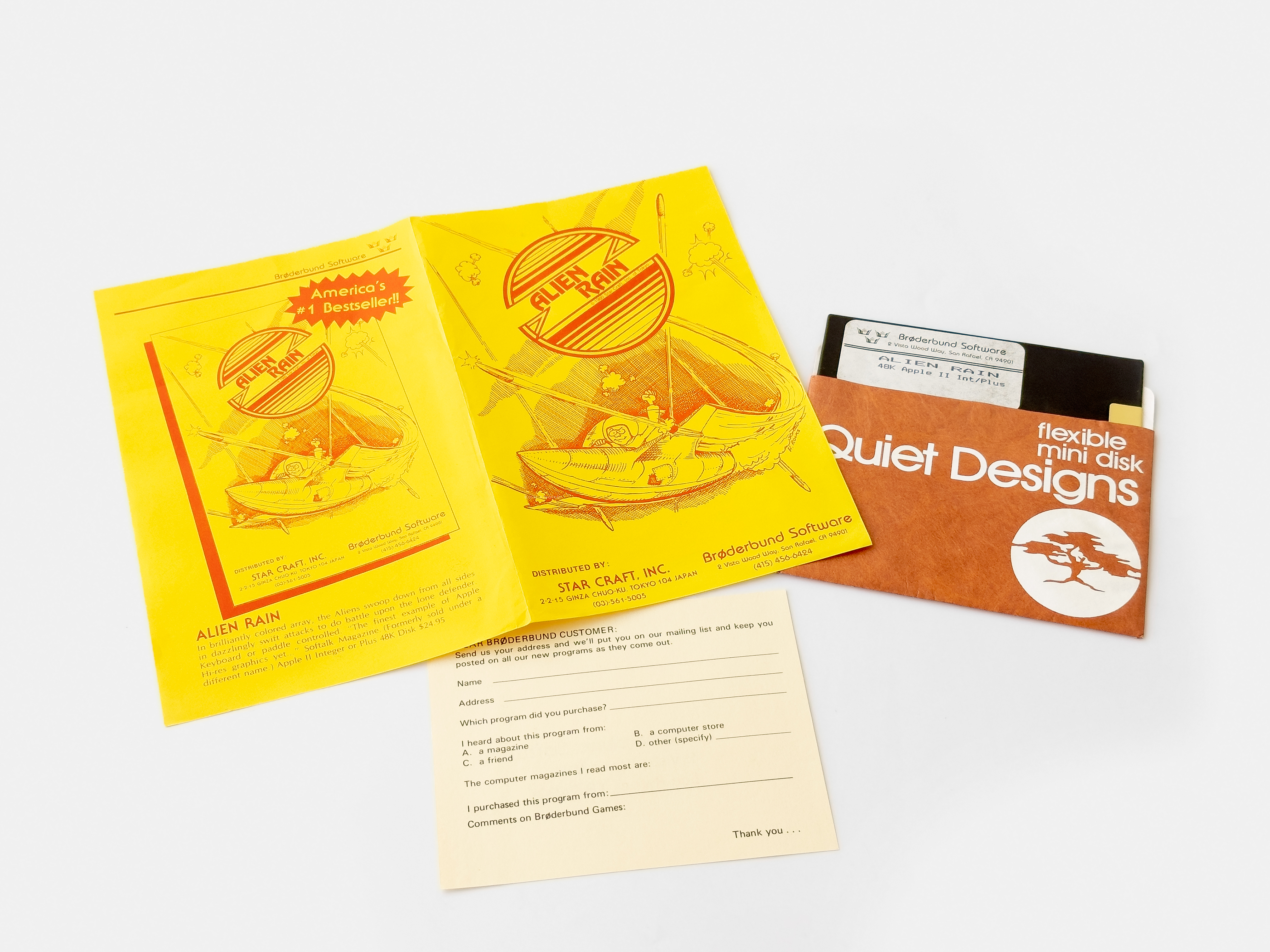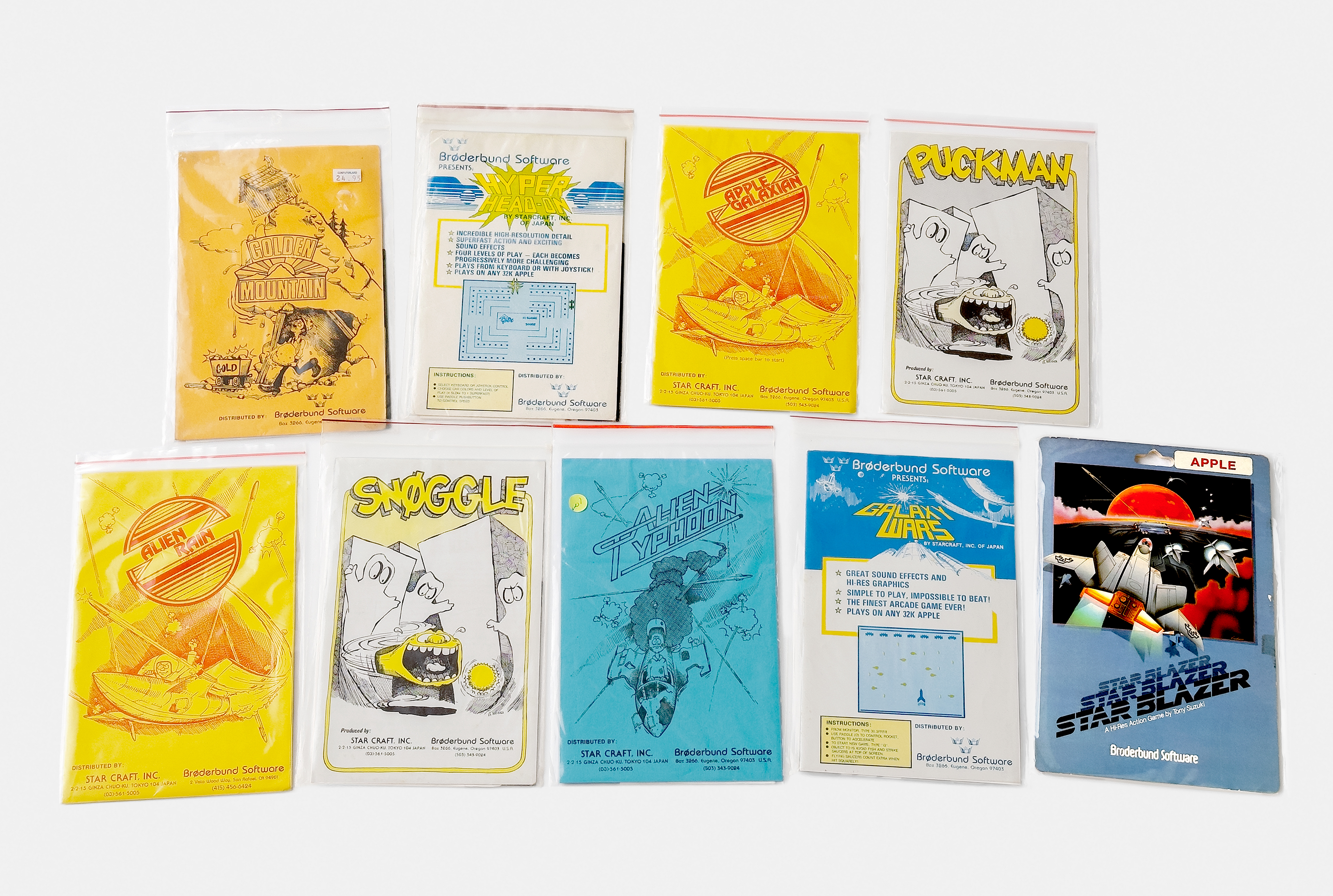 The 9 (including Alien Rain) Star Craft titles, published by Brøderbund from the autumn of 1980 to December of 1981, with the last release being Tony Suzuki’s Star Blazer.