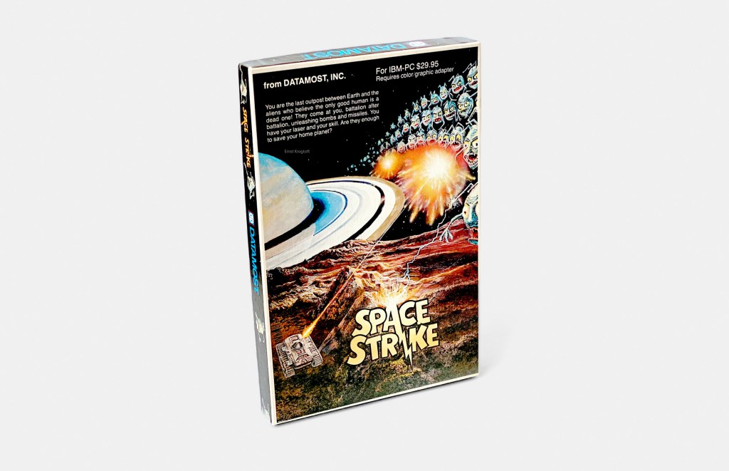 Michael Abrash’s Space Strike, a Space Invader clone, was published for the newly introduced IBM PC by Datamost in 1982. The game would not only help establish the business-oriented PC as a machine capable of playing fast-paced action games, but also Abrash as one of the programming and graphics pioneers of the x86 architecture.