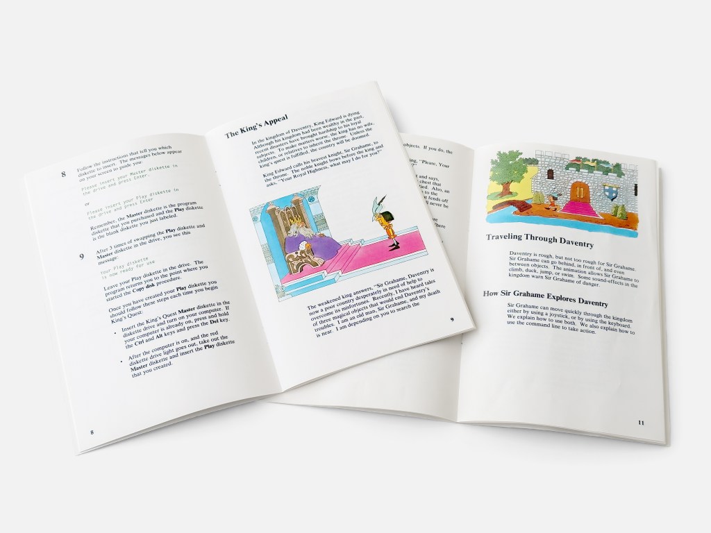 The manual with original cartoon artwork, included The King’s Appeal, a short introduction to the game’s story and setting.