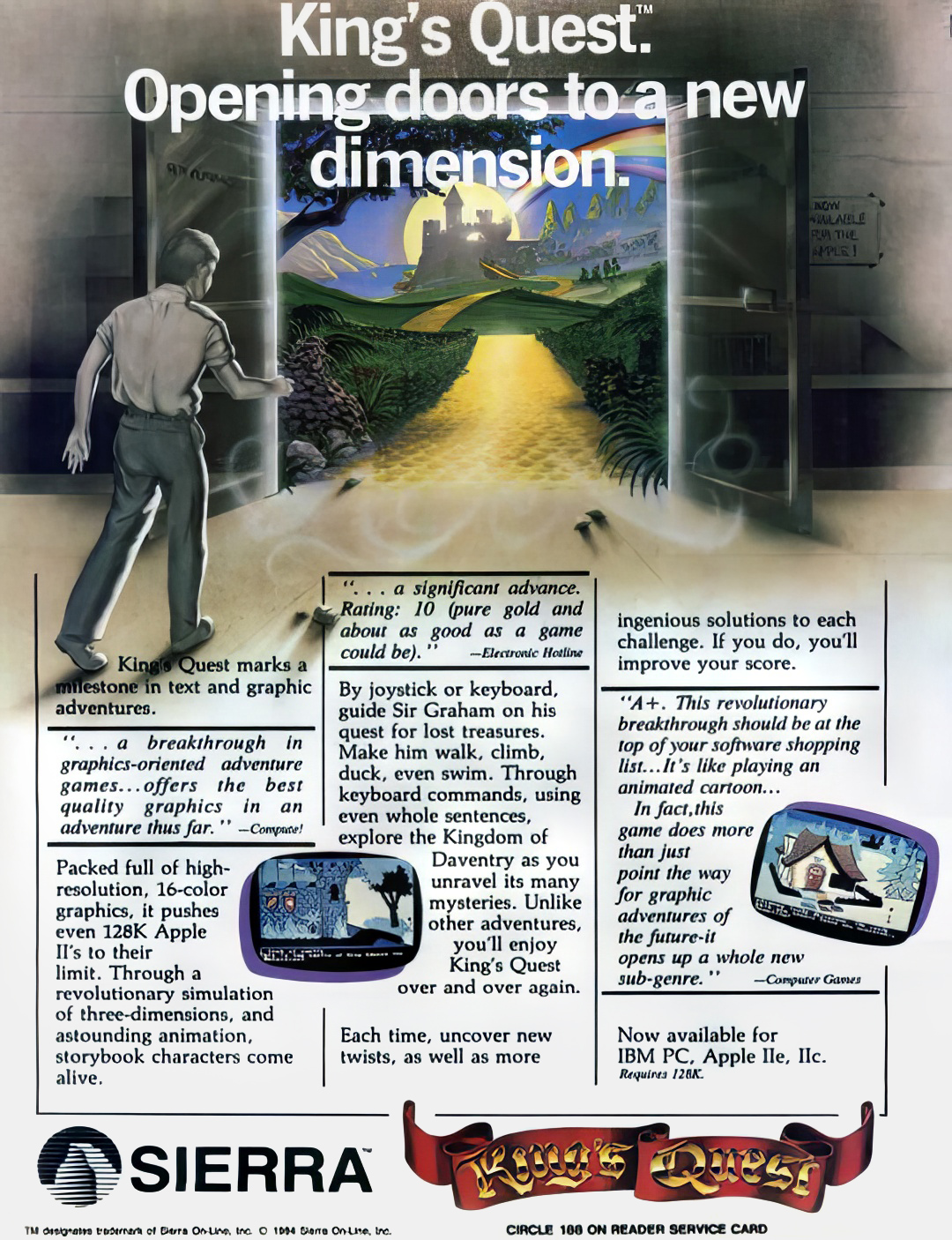 Sierra On-Line announcing the availability of King’s Quest for the IBM PC and Apple II.