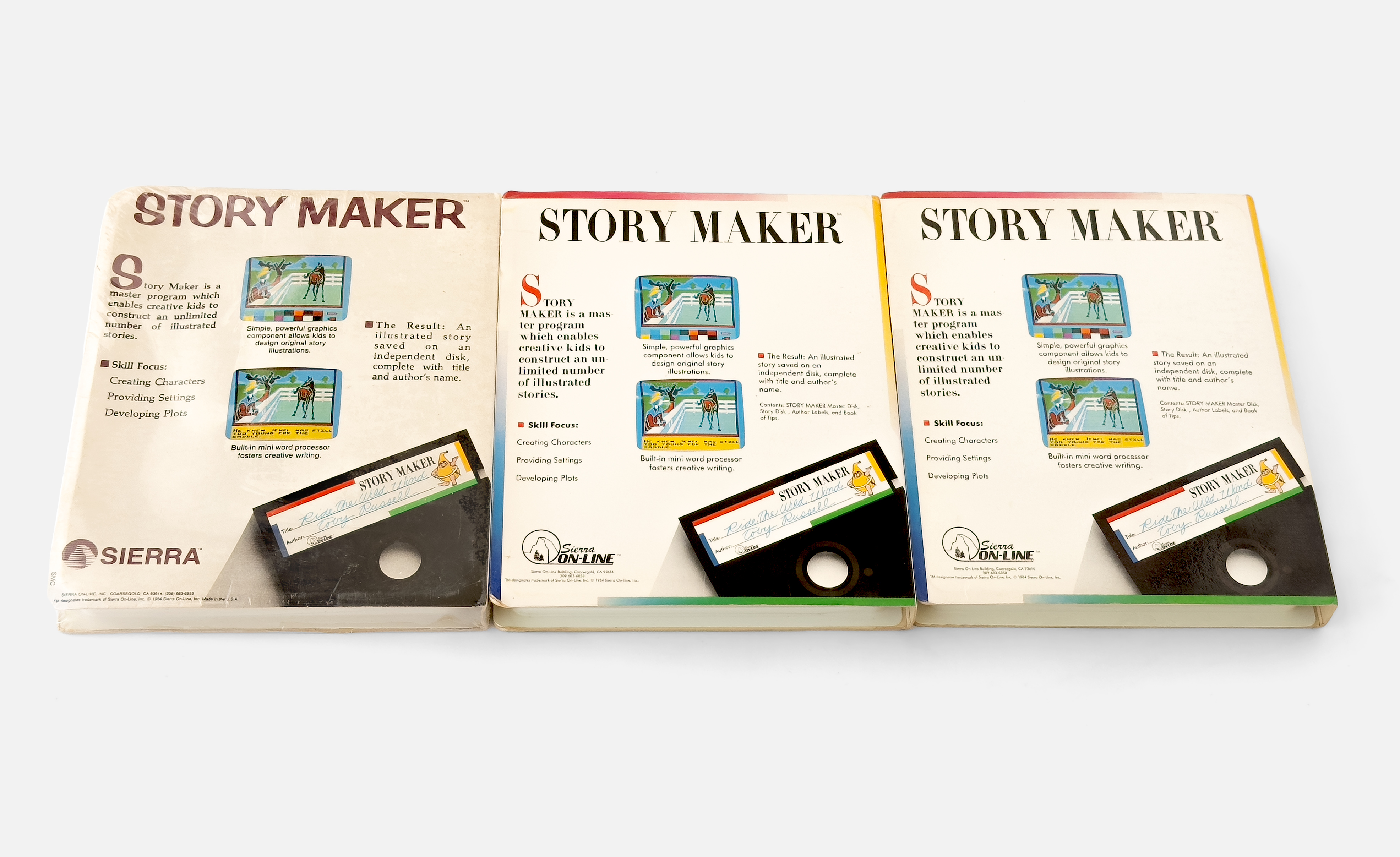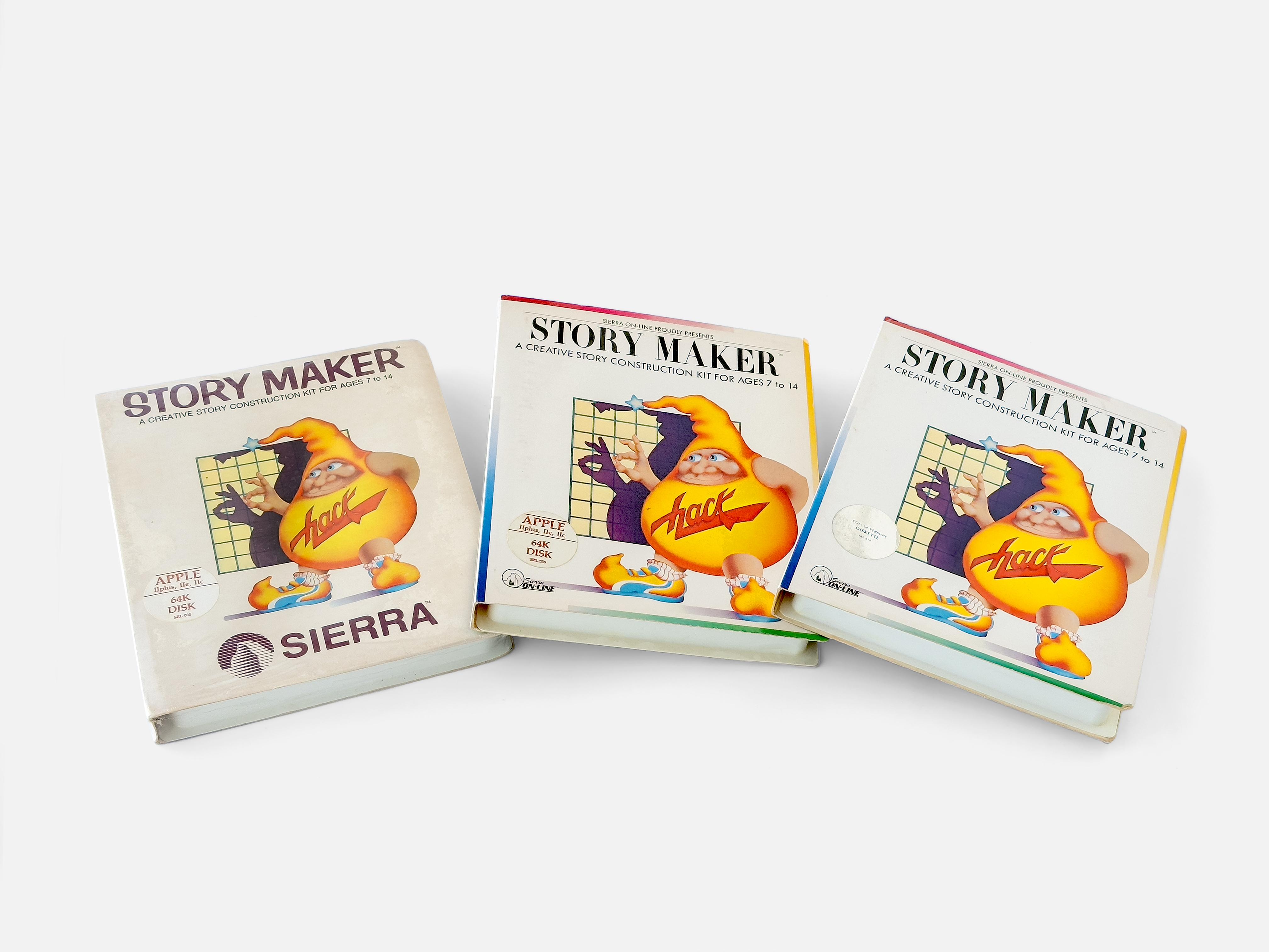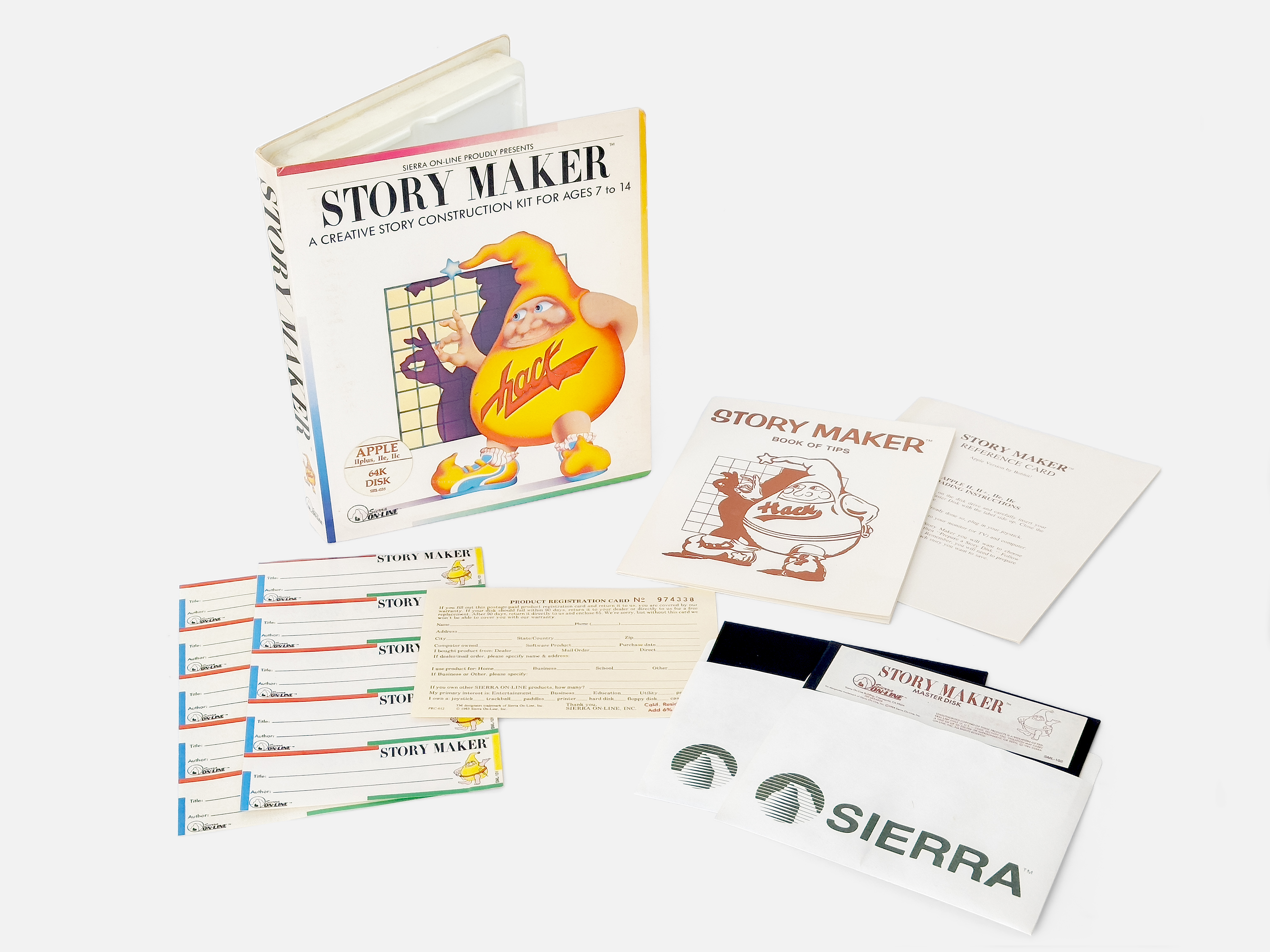 in January 1984, Sierra invested in further growing its educational portfolio after it, at the Winter CES show in Las Vegas signed with Walt Disney to bring some of its beloved characters into the digital realm. Amidst the development and publication of titles based on already established and popular franchises, programmer Robert “Bobbit” Bobbio, who had contracted with Sierra in 1983 to work on the Atari 8-bit and Commodore 64 versions of Nancy Anderton‘s educational title Learning with Leeper, went on to design Story Maker, a creative story construction kit targeting ages 7 to 14.