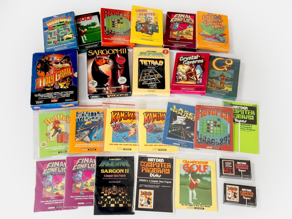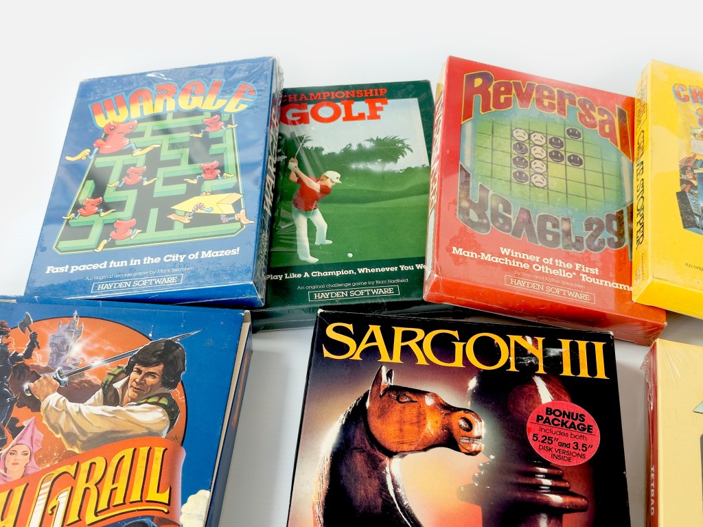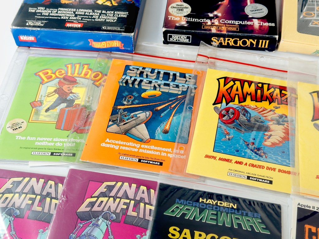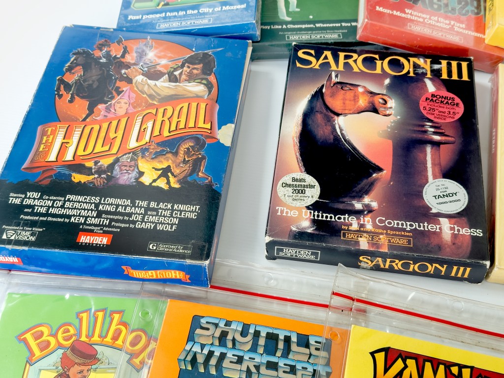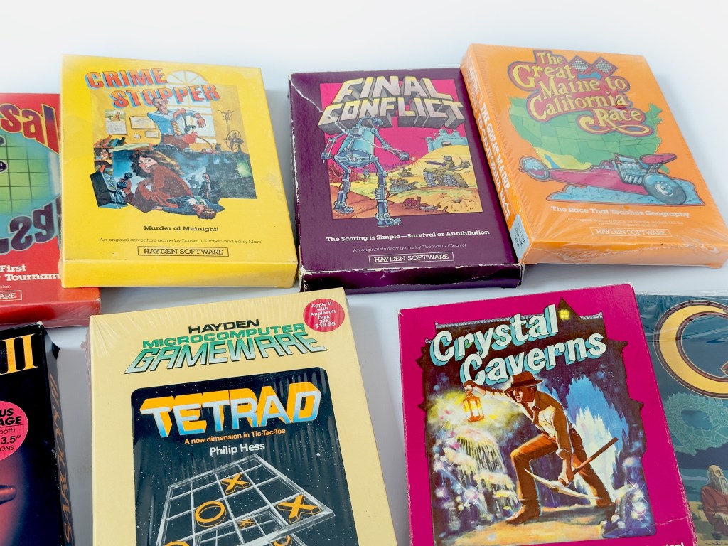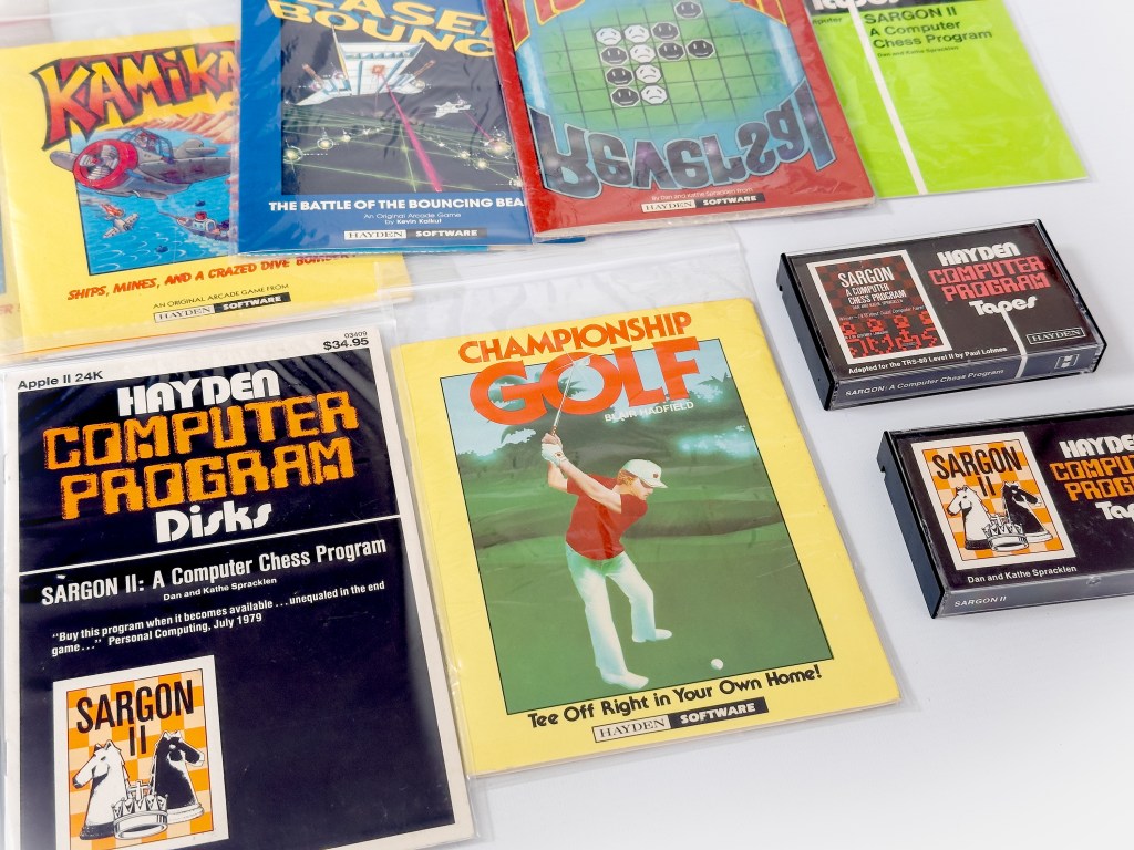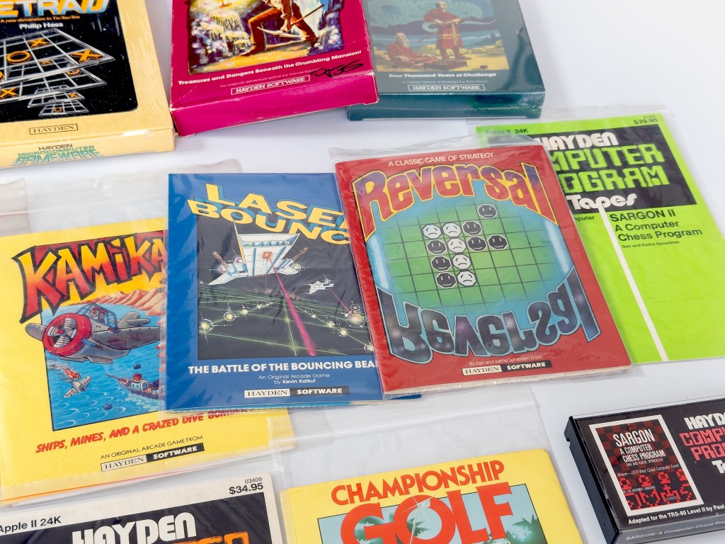 I’m sorting out the collection a bit – deciding what to sell, what to keep, and what to write about. Here’s a small Hayden Software family portrait of the titles hiding in one of my closets.