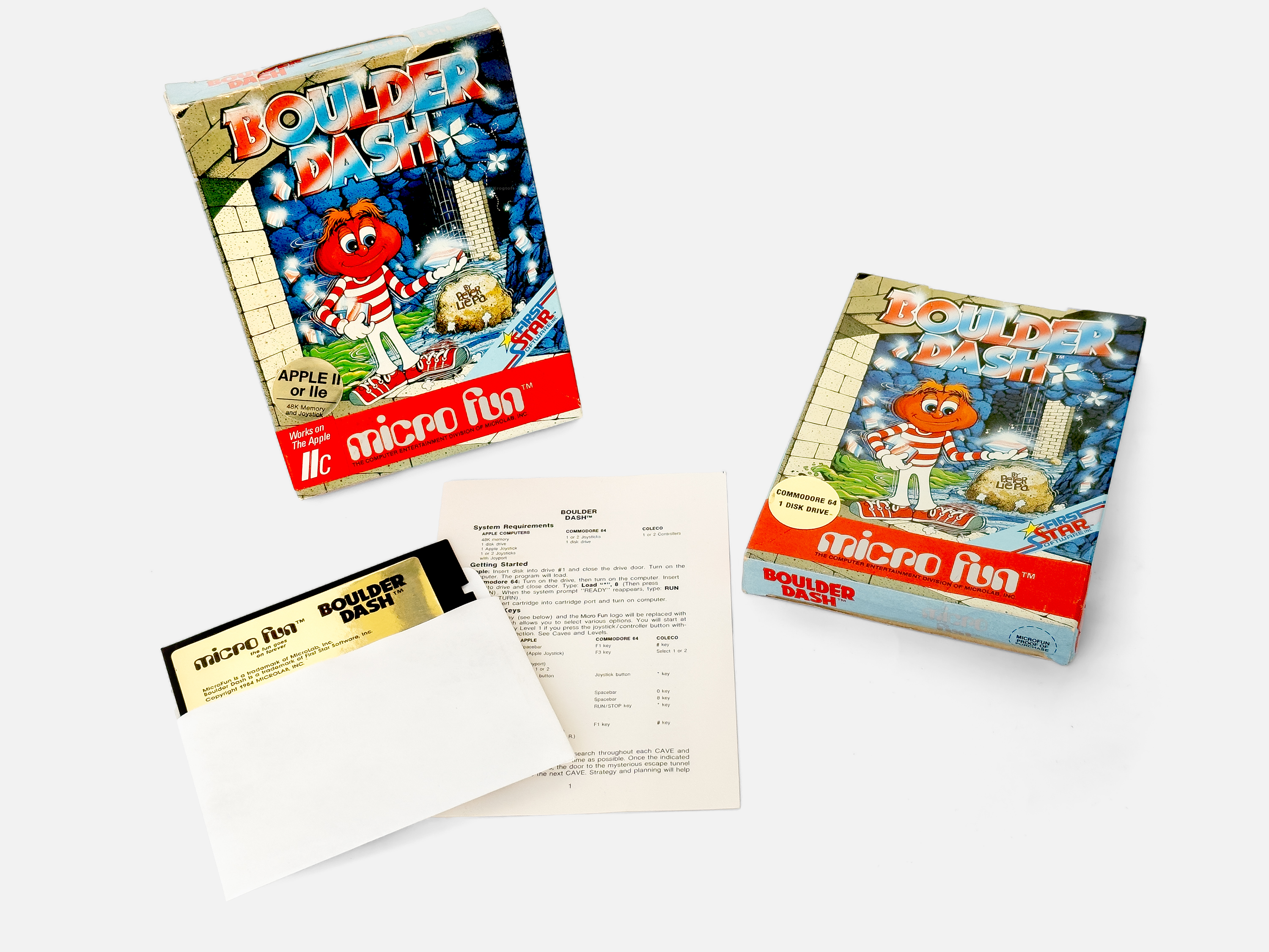 In 1984, Micro Lab licensed Boulder Dash, converting and releasing it for the Apple II, Commodore 64, and ColecoVision under its entertainment label, Micro Fun.